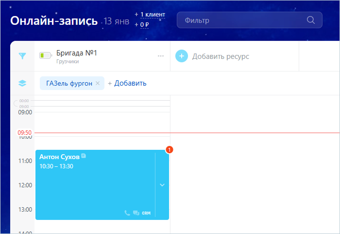 Это не отдельный инструмент внутри Битрикс24, а неотъемлемая часть CRM. Все процессы — от бронирования до взаимодействия с клиентом — полностью интегрированы в CRM. Записи можно вести как в разделе «Онлайн-запись», так и в CRM, не переключаясь между ними.
