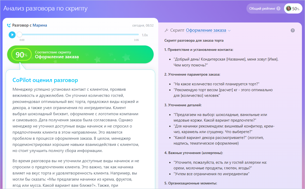 Теперь я вижу объективную аналитику по каждому менеджеру и могу точечно работать с их развитием. Раньше на это уходили часы выборочных проверок.