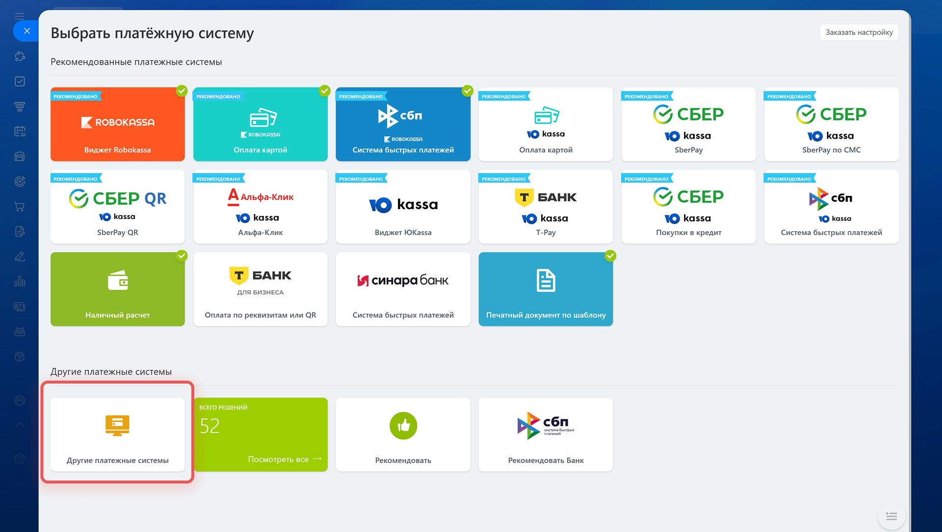 Зайдите в Центр продаж - Платежные системы - Другие платежные системы.