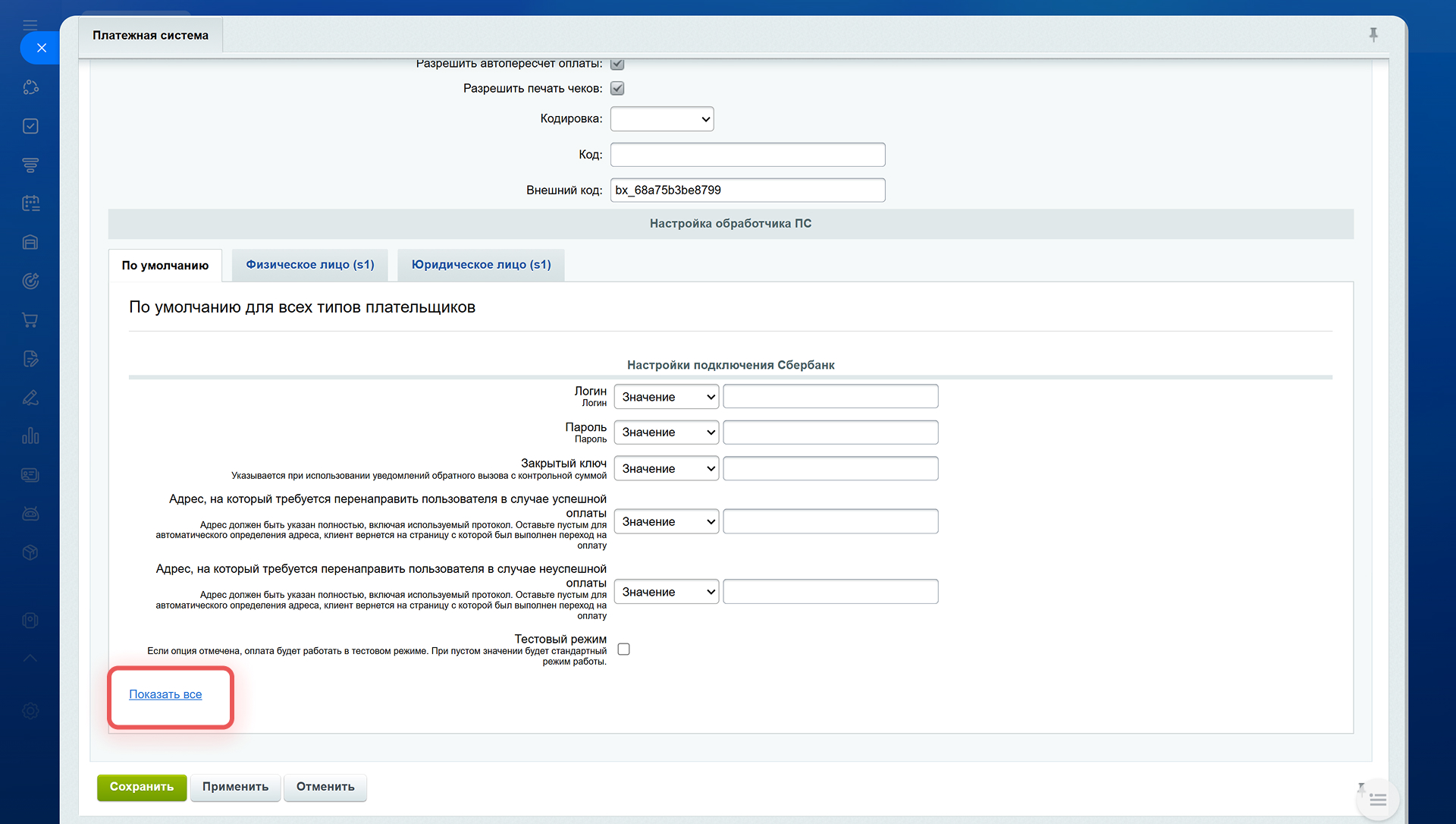 В блоке Настройка обработчика ПС нажмите Показать все.