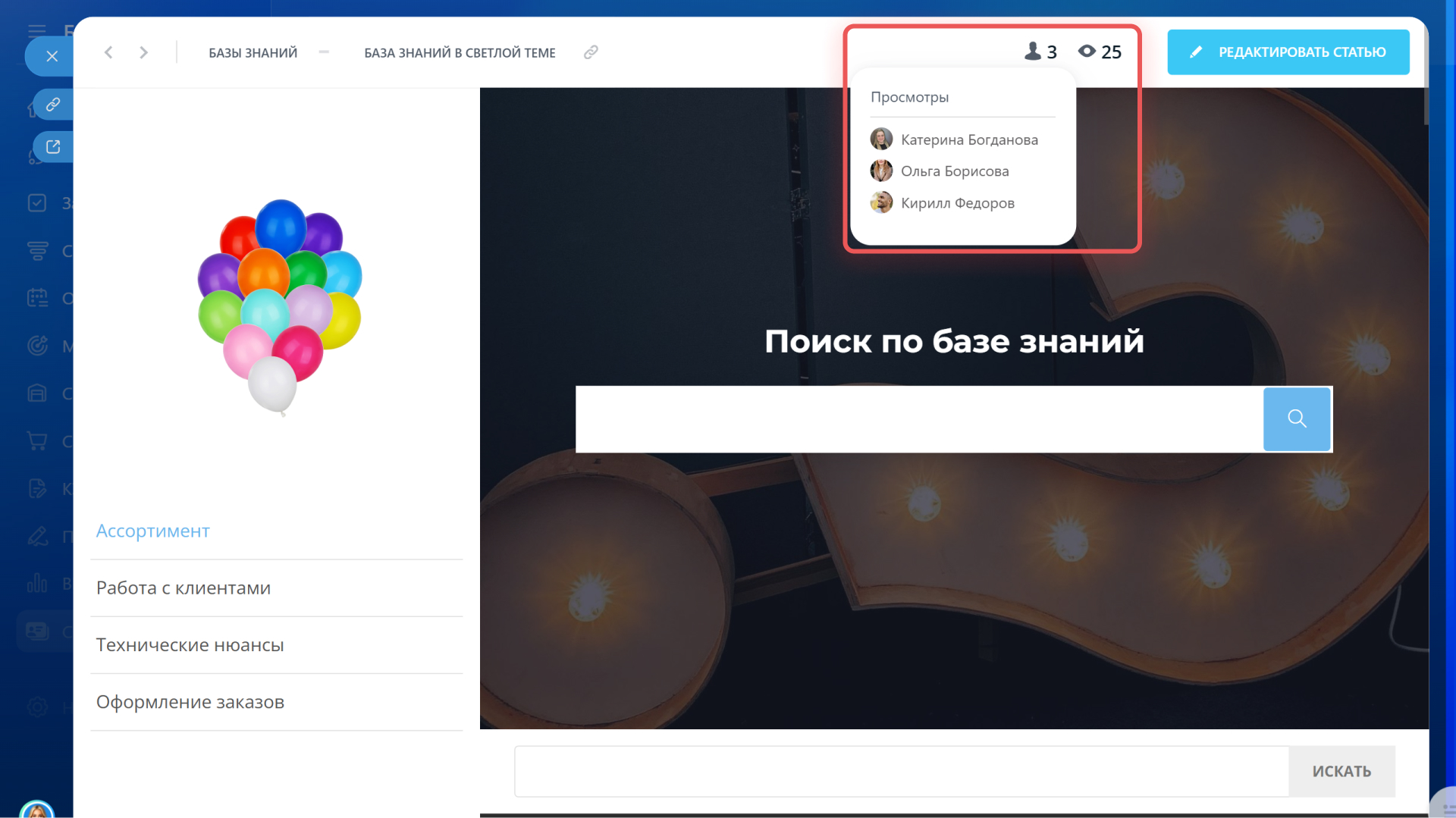 В базе знаний есть счётчик просмотров, который помогает отслеживать, как часто открывают каждую страницу.