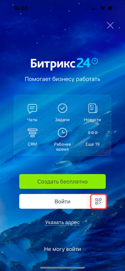 QR-код. Если вы уже авторизованы в веб-версии Битрикс24, то можете быстро войти в мобильное приложение с помощью QR-кода. QR-код в веб-версии находится в вашем профиле: нажмите на свое фото, затем на иконку Вход с телефона.