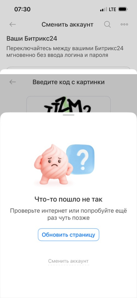 Ошибка. При входе в мобильное приложение Битрикс24 постоянно появляется окно «Введите код с картинки».