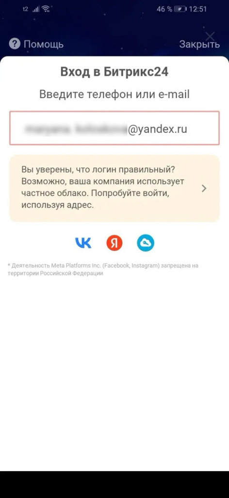 - Войдите в Битрикс24 через социальные сети, если они привязаны к аккаунту.