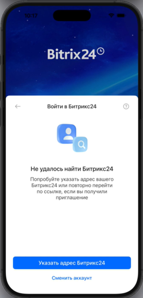Ошибка возникает, если вы пытаетесь войти в Битрикс24, к которому у вас нет доступа.