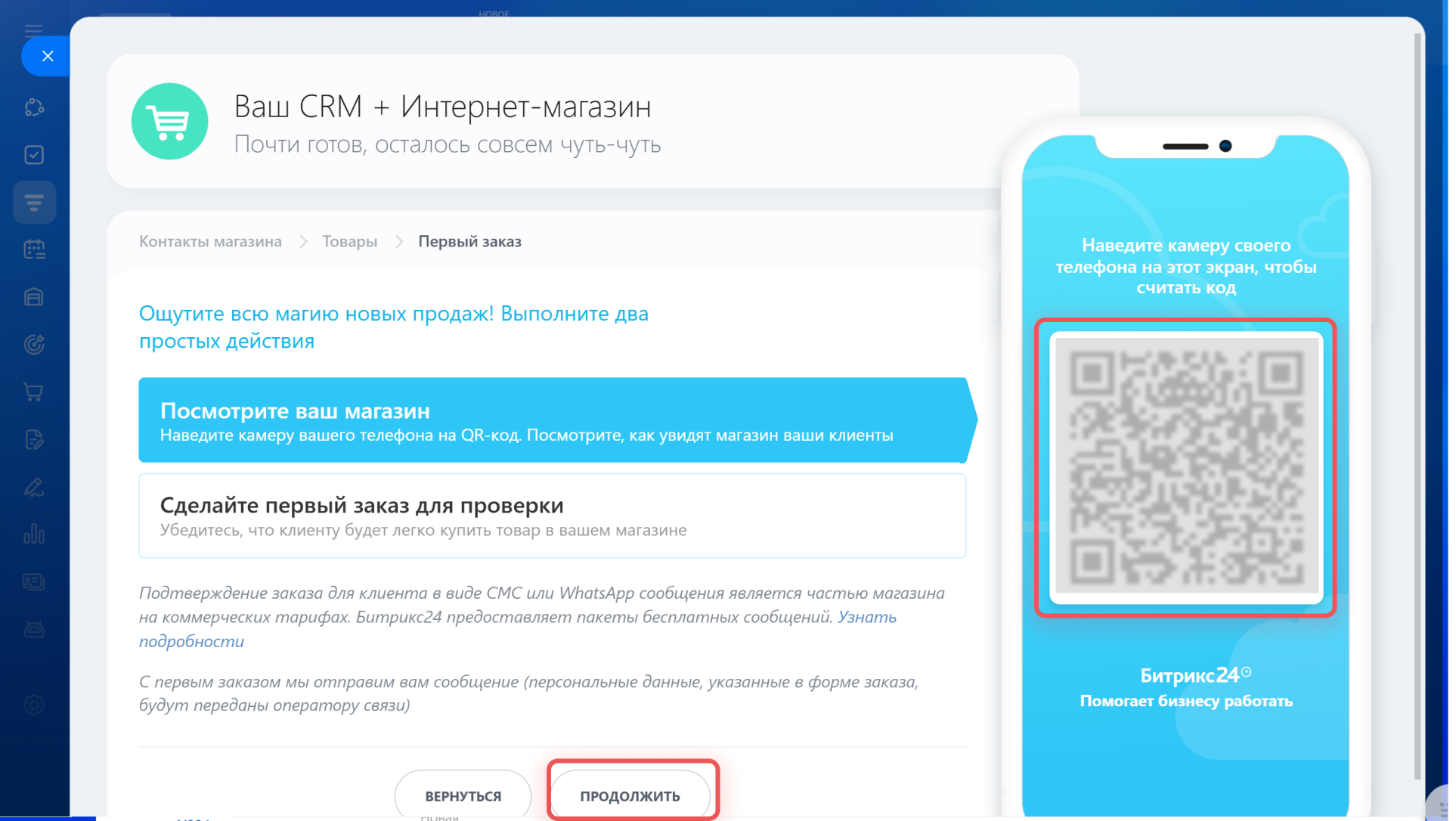 Вернитесь в Битрикс24 и нажмите Продолжить.