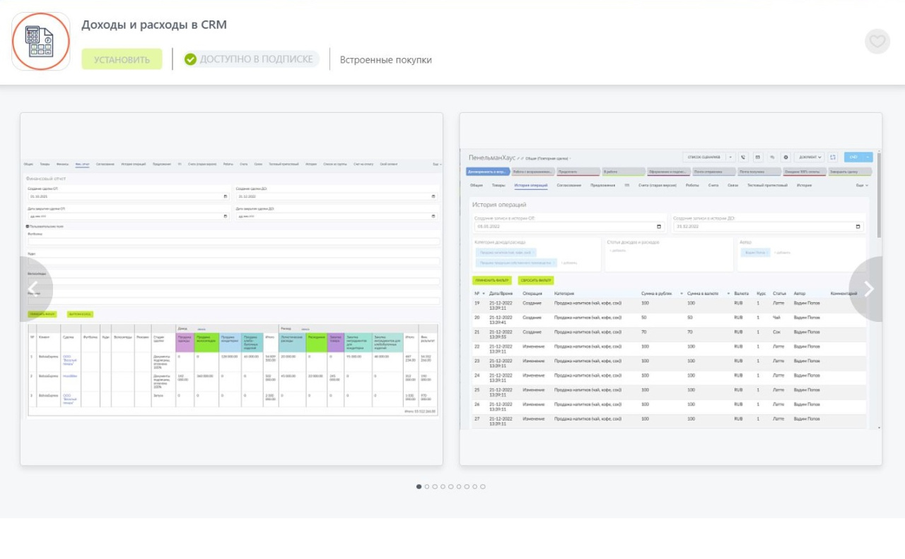 Позволяет настроить аналитические отчеты и учитывать движение денежных средств по сделкам и по статьям доходов и расходов компании.