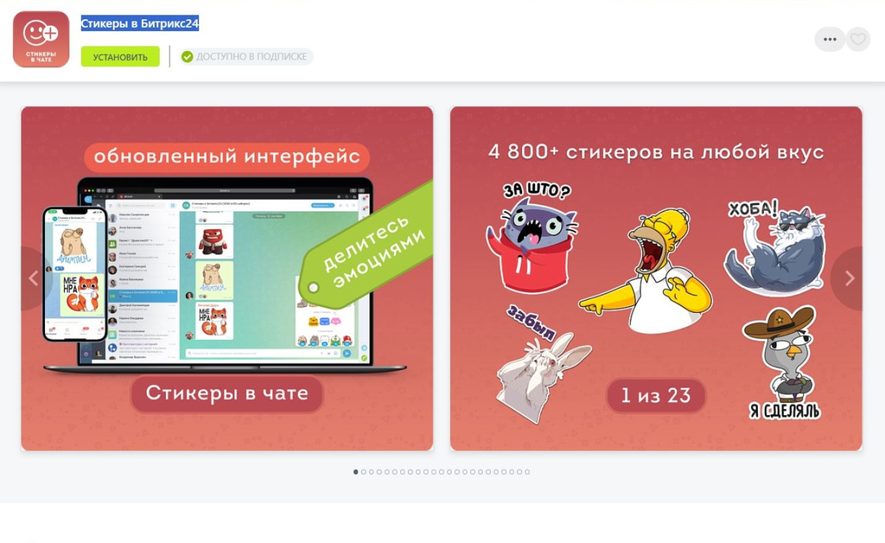 - Открыть приложение (Ещё → Маркетплейс → Стикеры в Битрикс24).