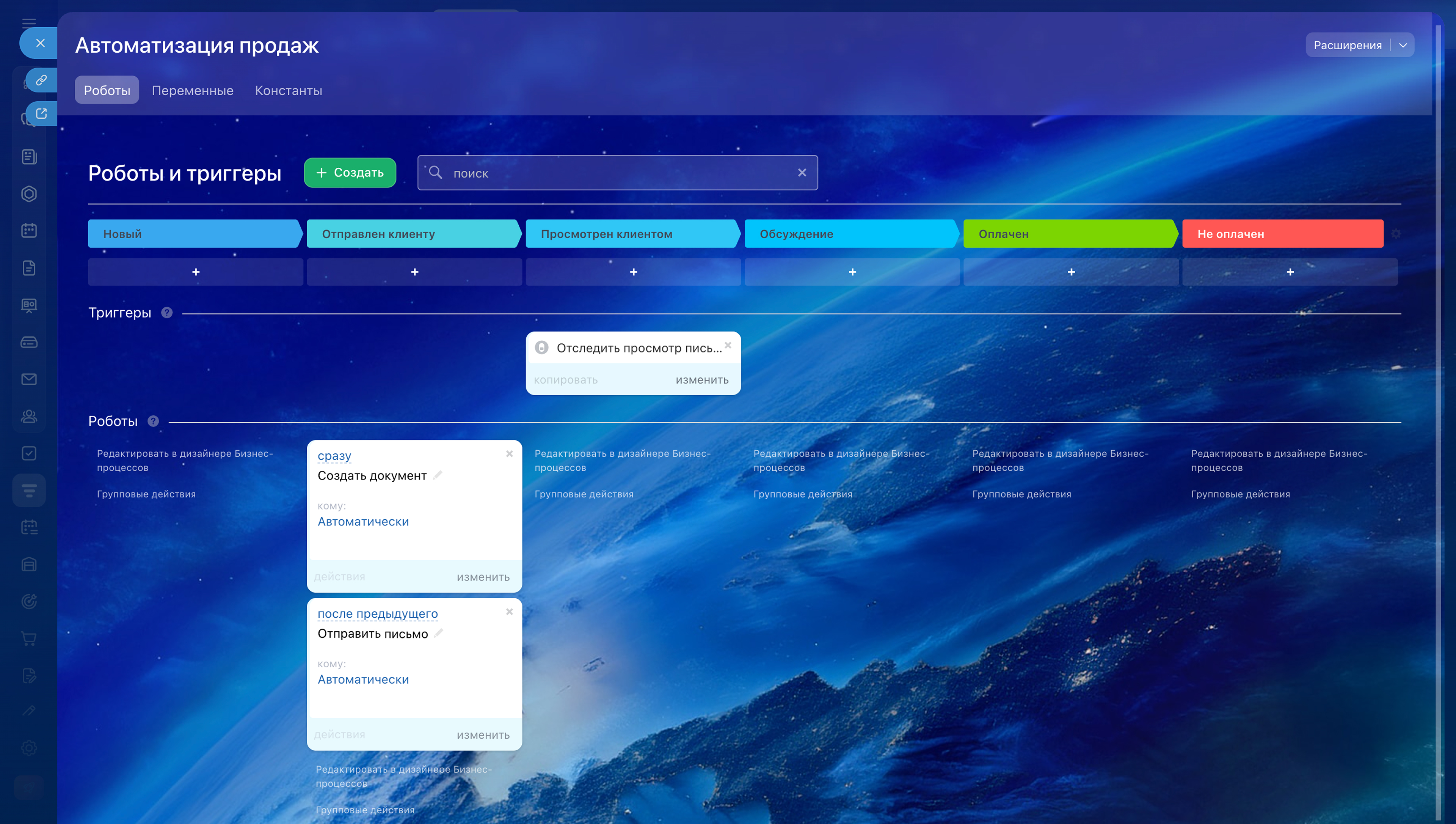 Автоматизация. В новых счетах можно использовать роботов, триггеры и бизнес-процессы. Например, автоматически создавать документ и отправлять его клиенту.