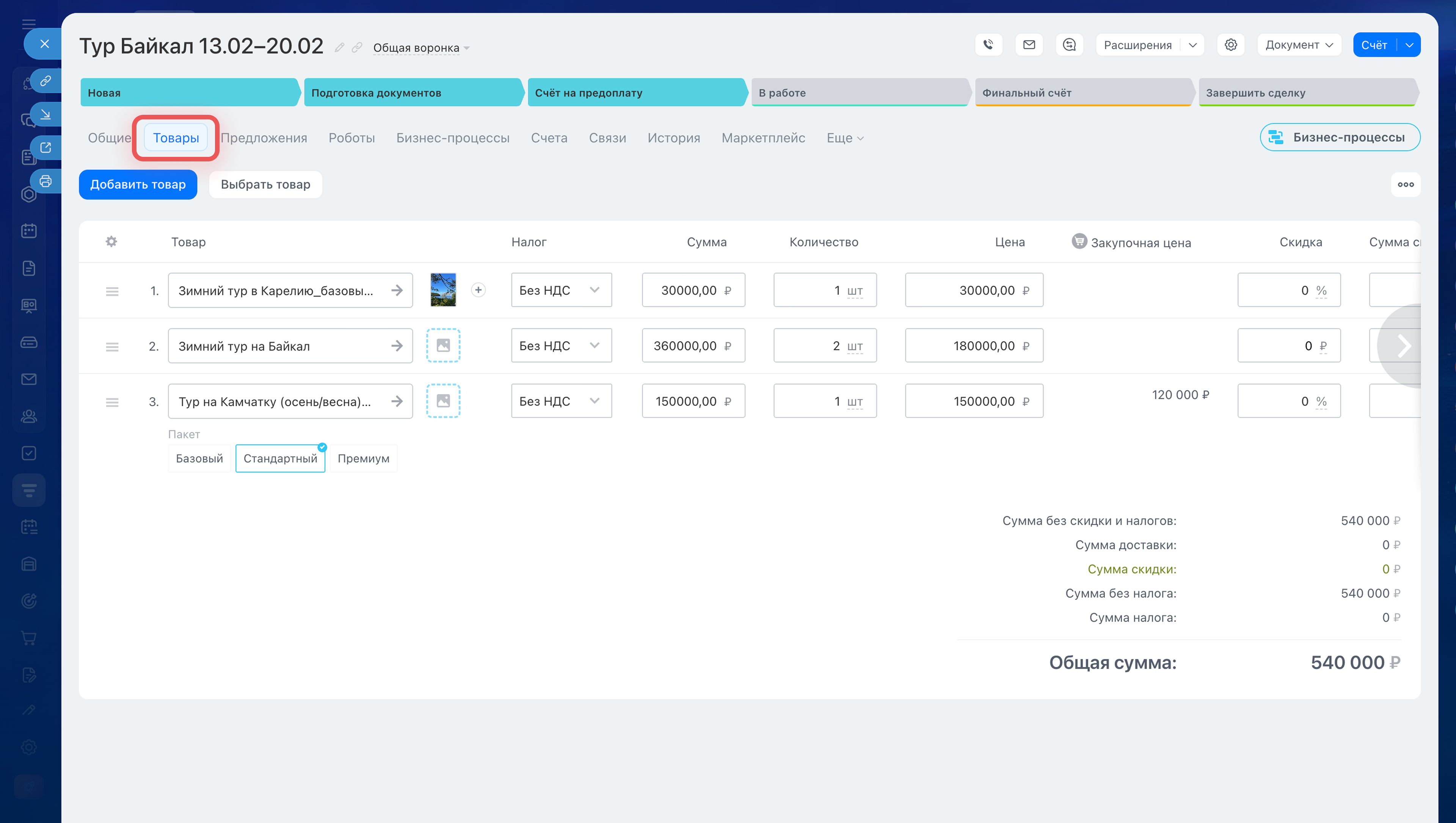Как добавить товары в карточку CRM