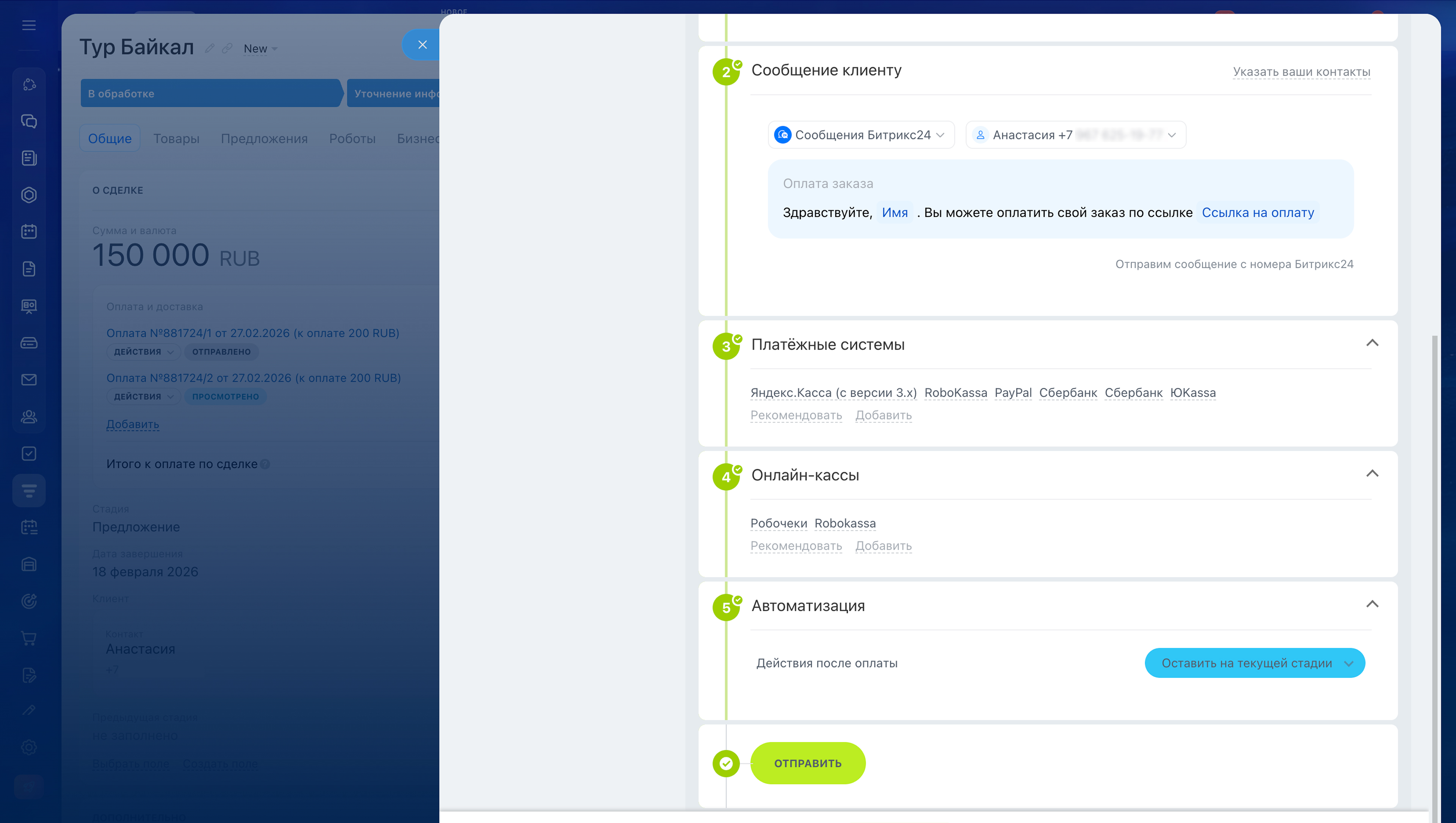 Как принять оплату и оформить доставку в карточке сделки