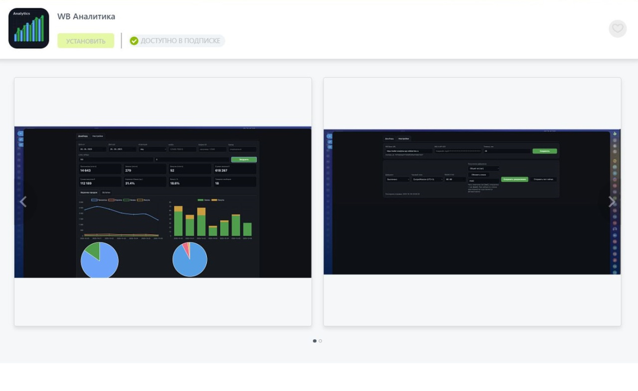Приложение подключается к аналитике Wildberries и показывает ключевые метрики прямо в Битрикс24. В один клик вы получаете: