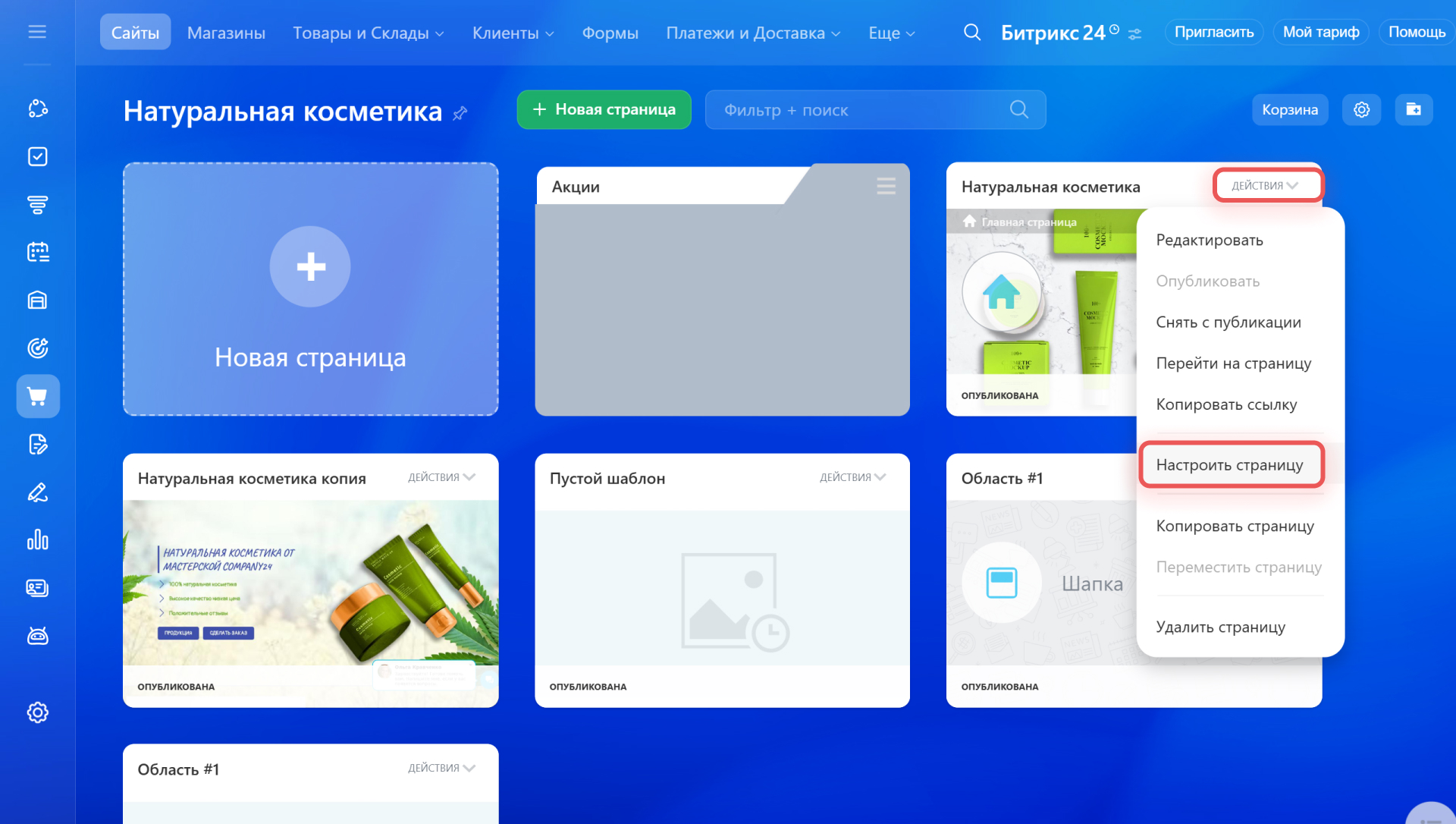 Виджет можно настроить в Настройках страницы. Для этого нажмите Действия — Настроить страницу.