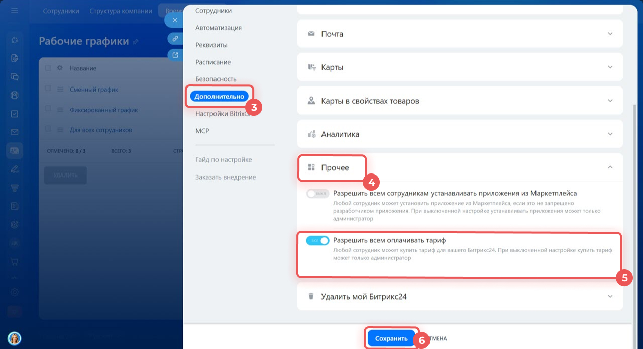 Разрешить всем сотрудникам оплачивать подписку на тариф