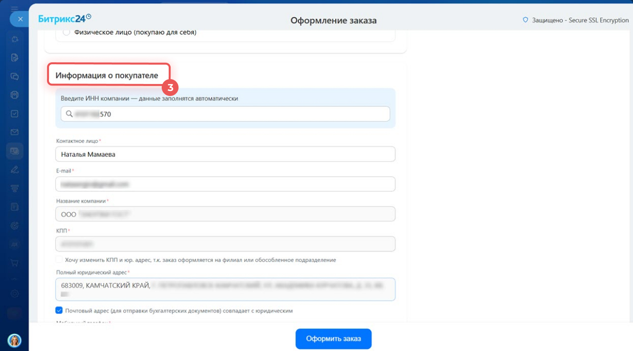 3. На шаге Информация о покупателе выберите плательщика и проверьте контактные данные.