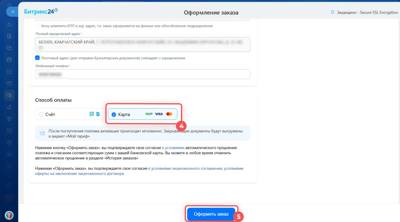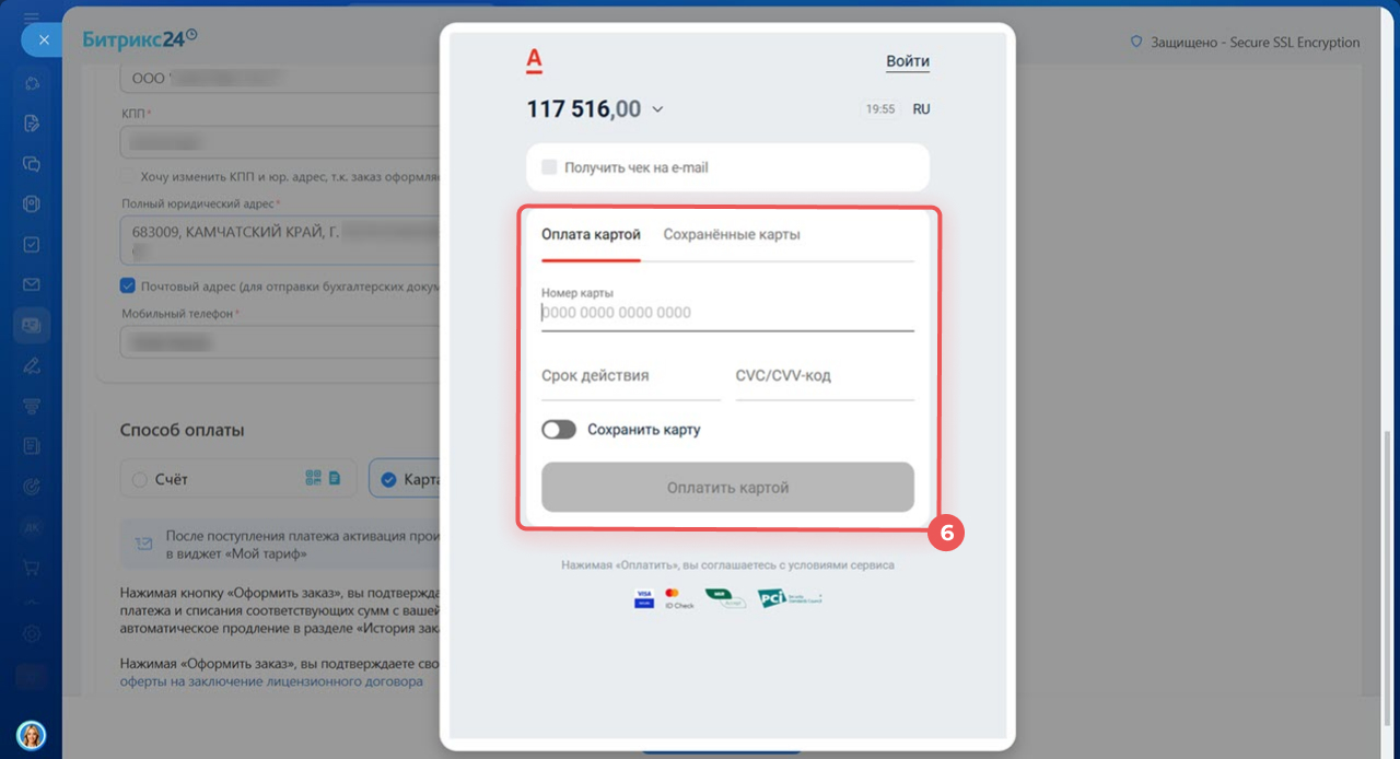 6. Укажите данные карты и оплатите заказ.