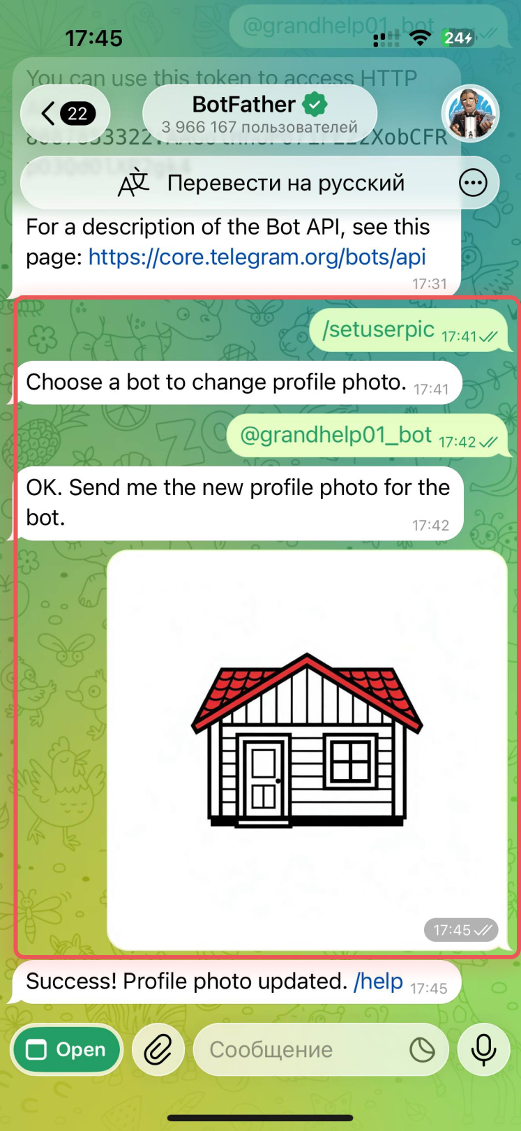 Получить токен существующего бота.