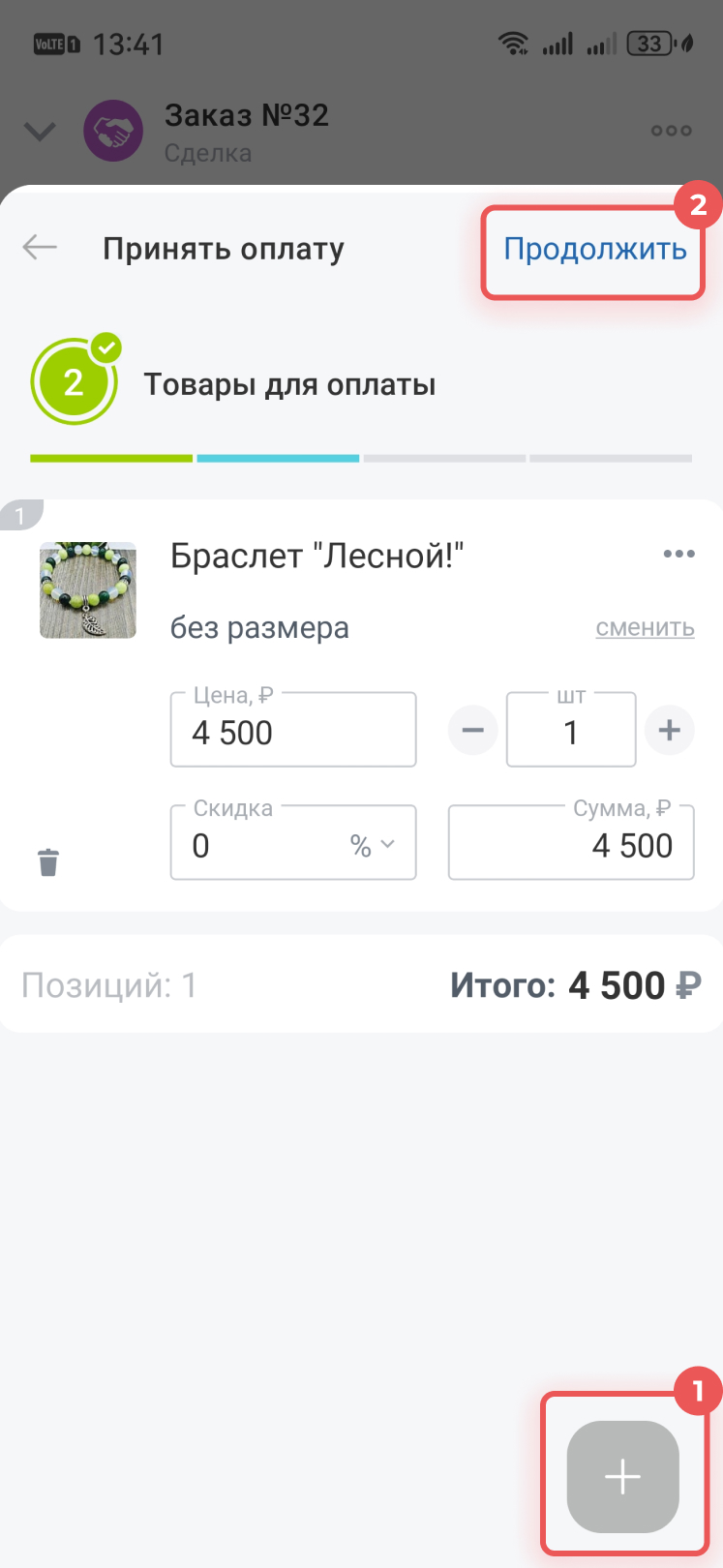 1. Нажмите Плюс (+) > Найти или создать товар, если надо добавить еще товар.