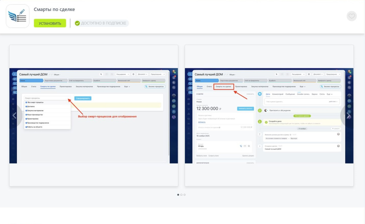 Установите решение и управляйте Сделками и смарт-процессами быстрее и удобнее.