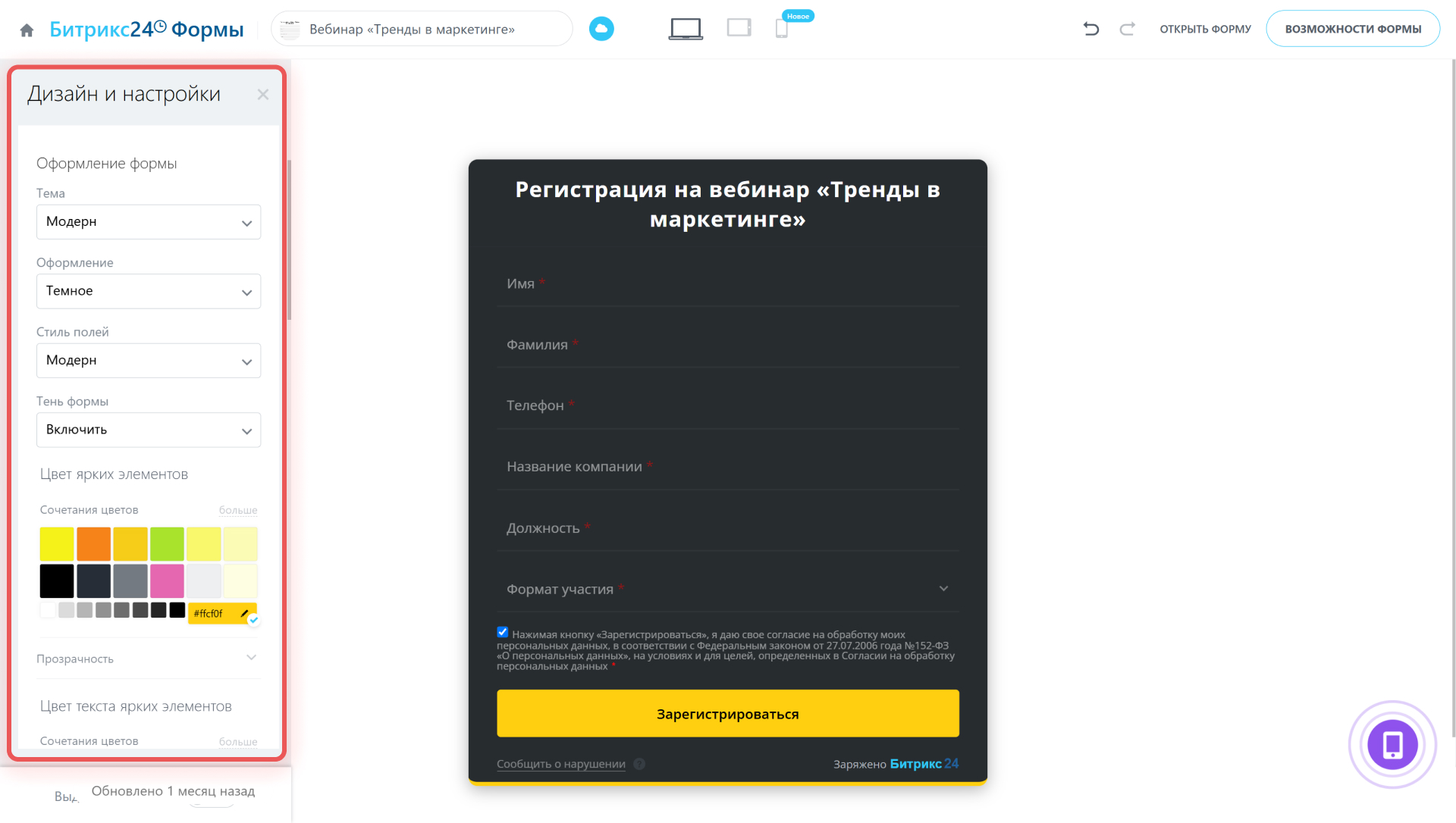 Настройте дизайн CRM-формы. Вы можете установить любой фон для вашей формы, настроить стиль полей, выбрать шрифт и так далее.