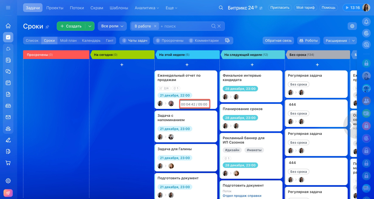 Как работать с задачами в режиме Сроки