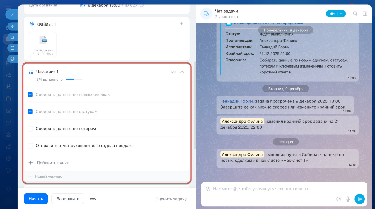 Чек-листы в задачах: как создать и работать с ними
