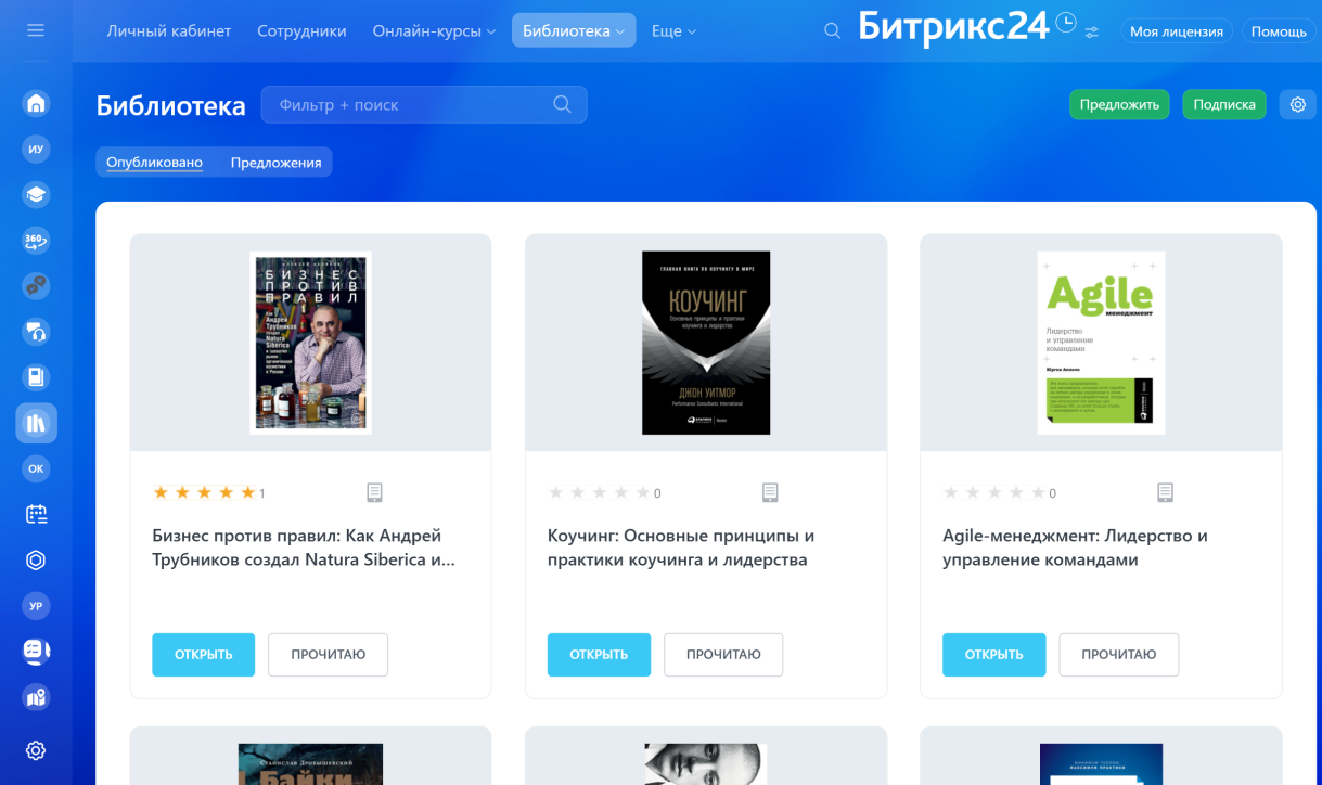Выбрать книгу из Библиотеки можно в веб-версии и мобильном приложении Битрикс24.