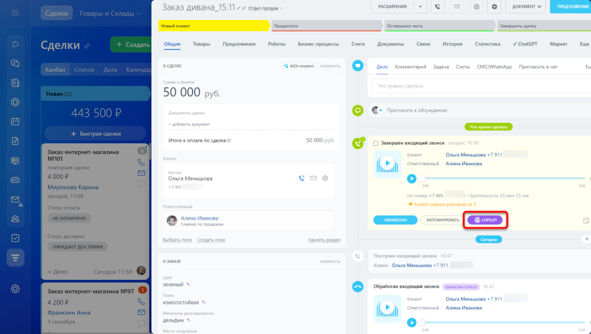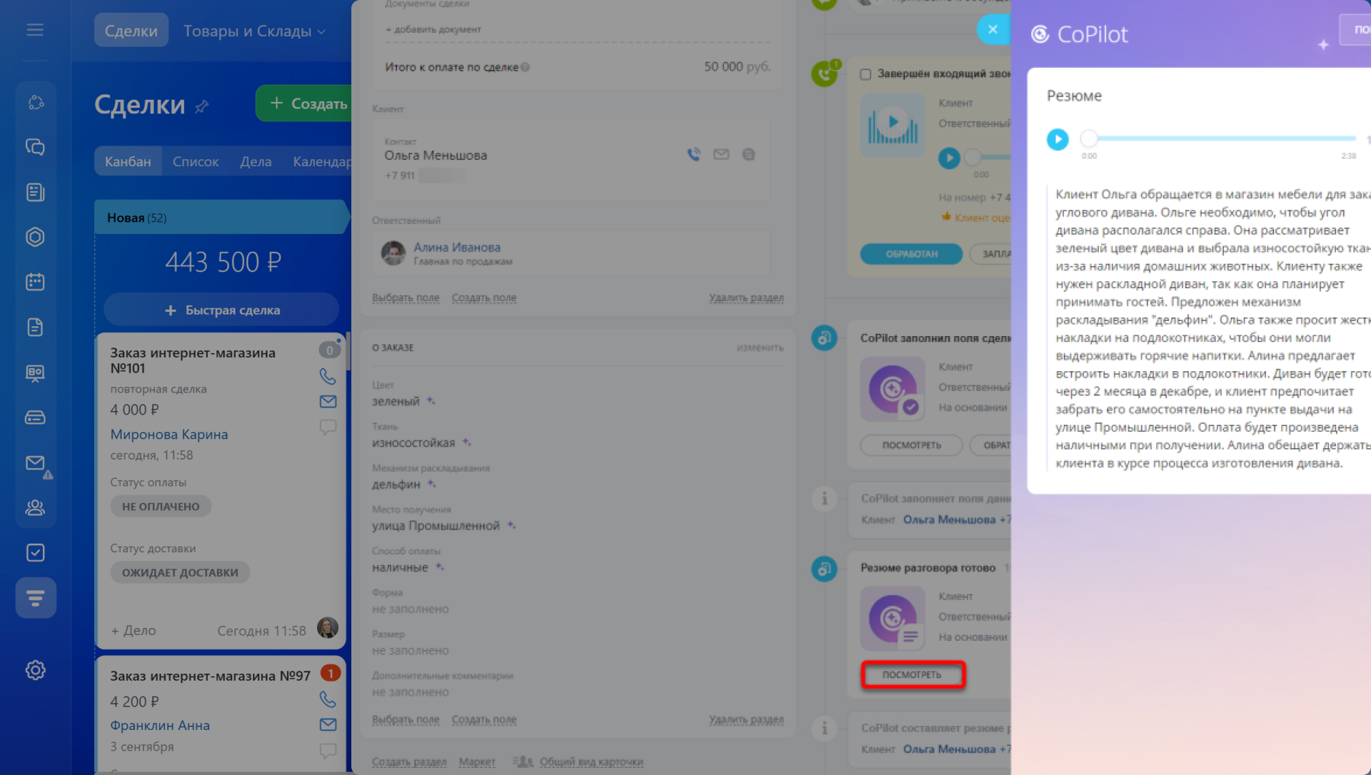 CoPilot в CRM помогает менеджерам обрабатывать звонки и тратить меньше времени на рутинные задачи.
