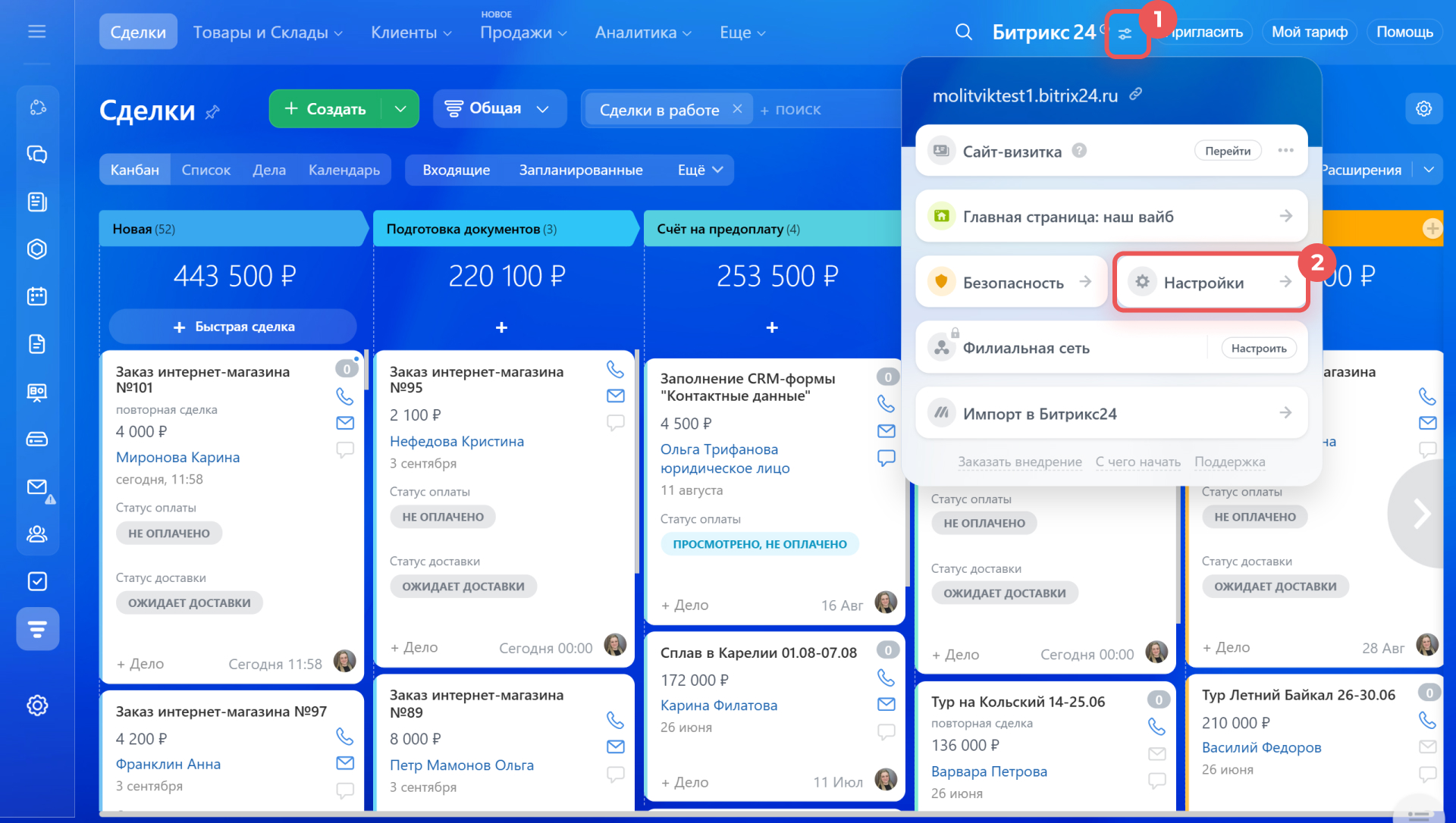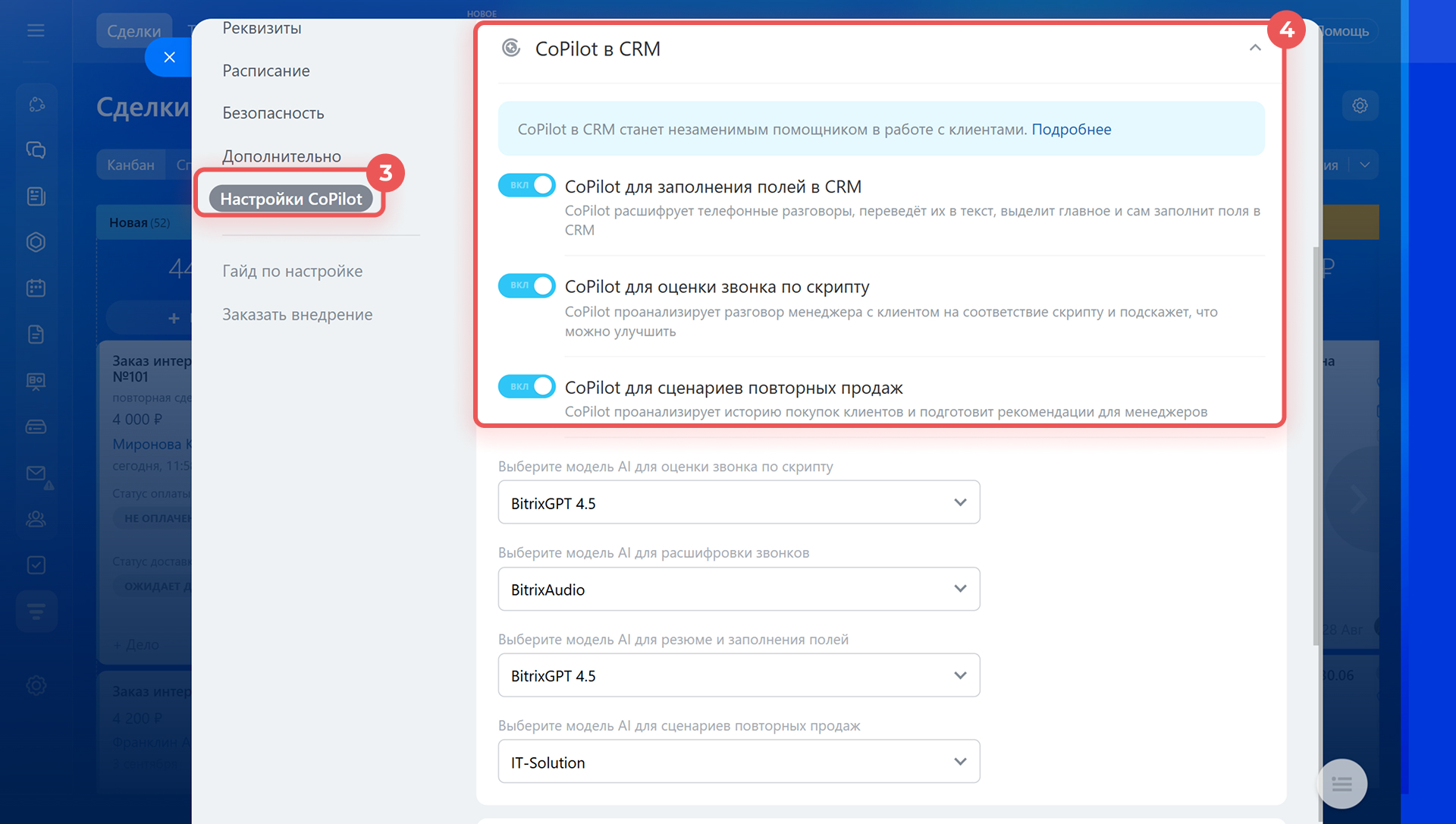 1. Включите CoPilot в CRM в настройках Битрикс24.