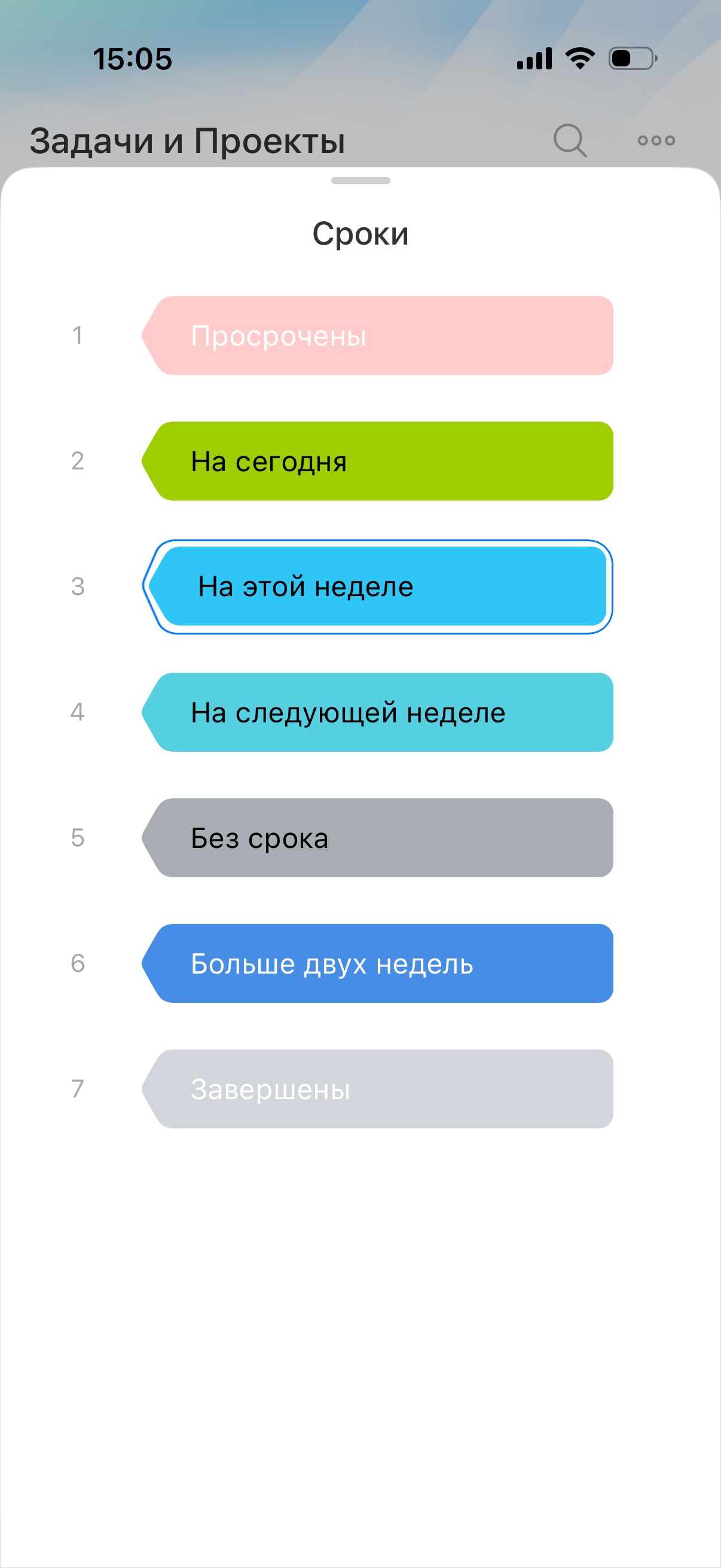 В режиме Сроки задачи автоматически распределяются по колонкам, в зависимости от того, когда они должны быть выполнены. Он помогает контролировать дедлайны задач и закрывать их вовремя.