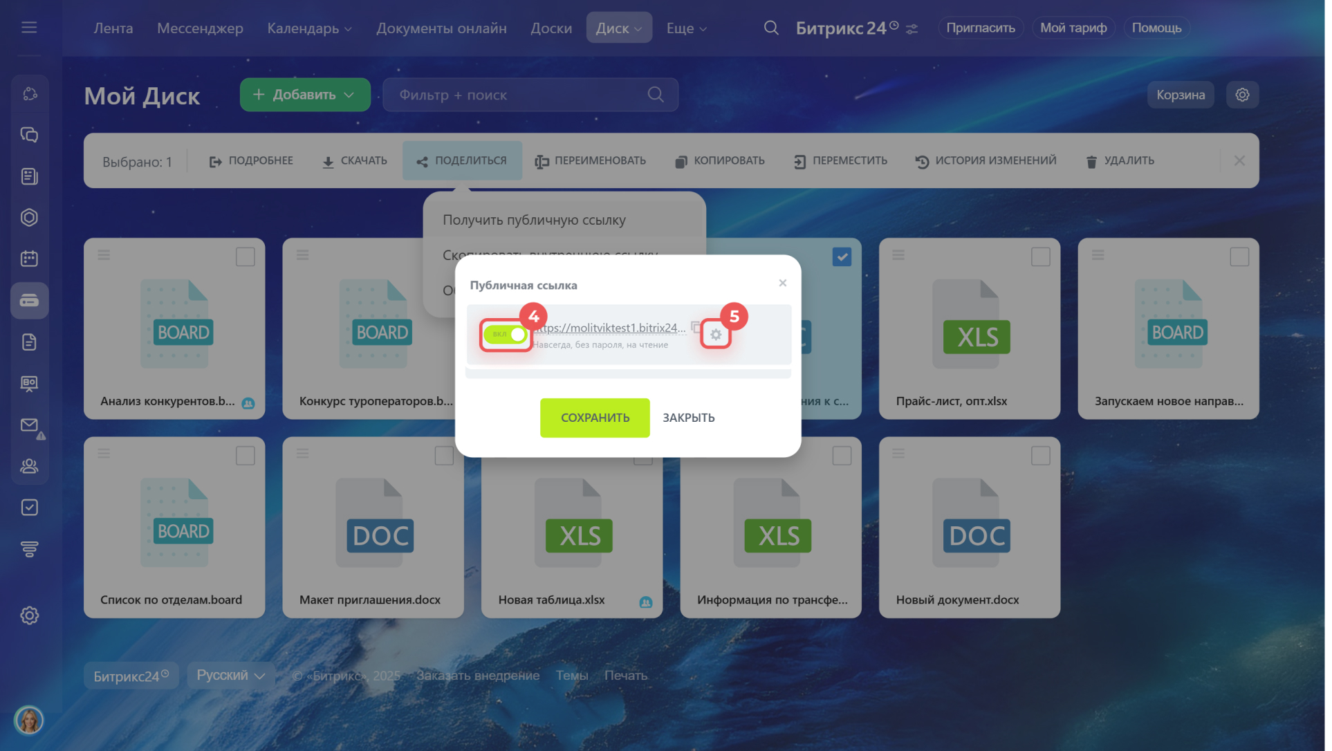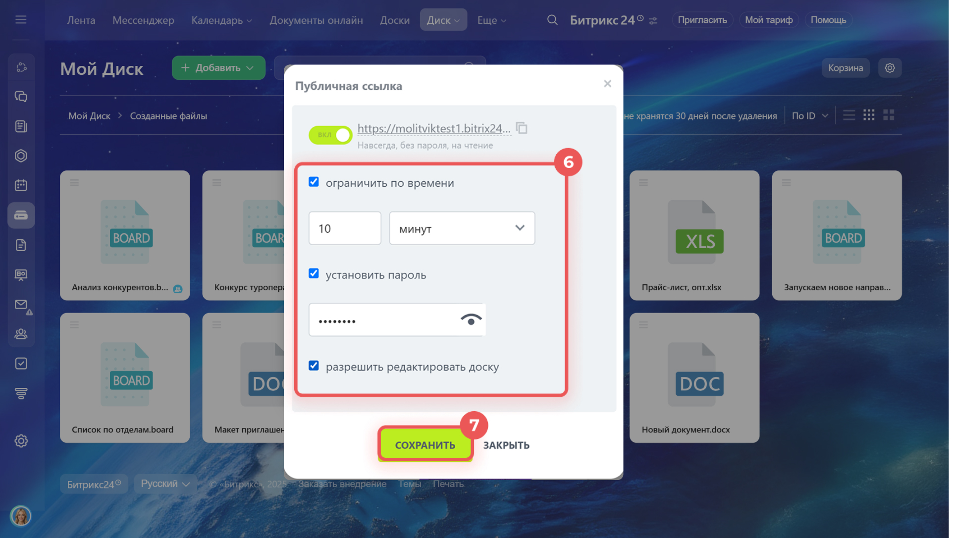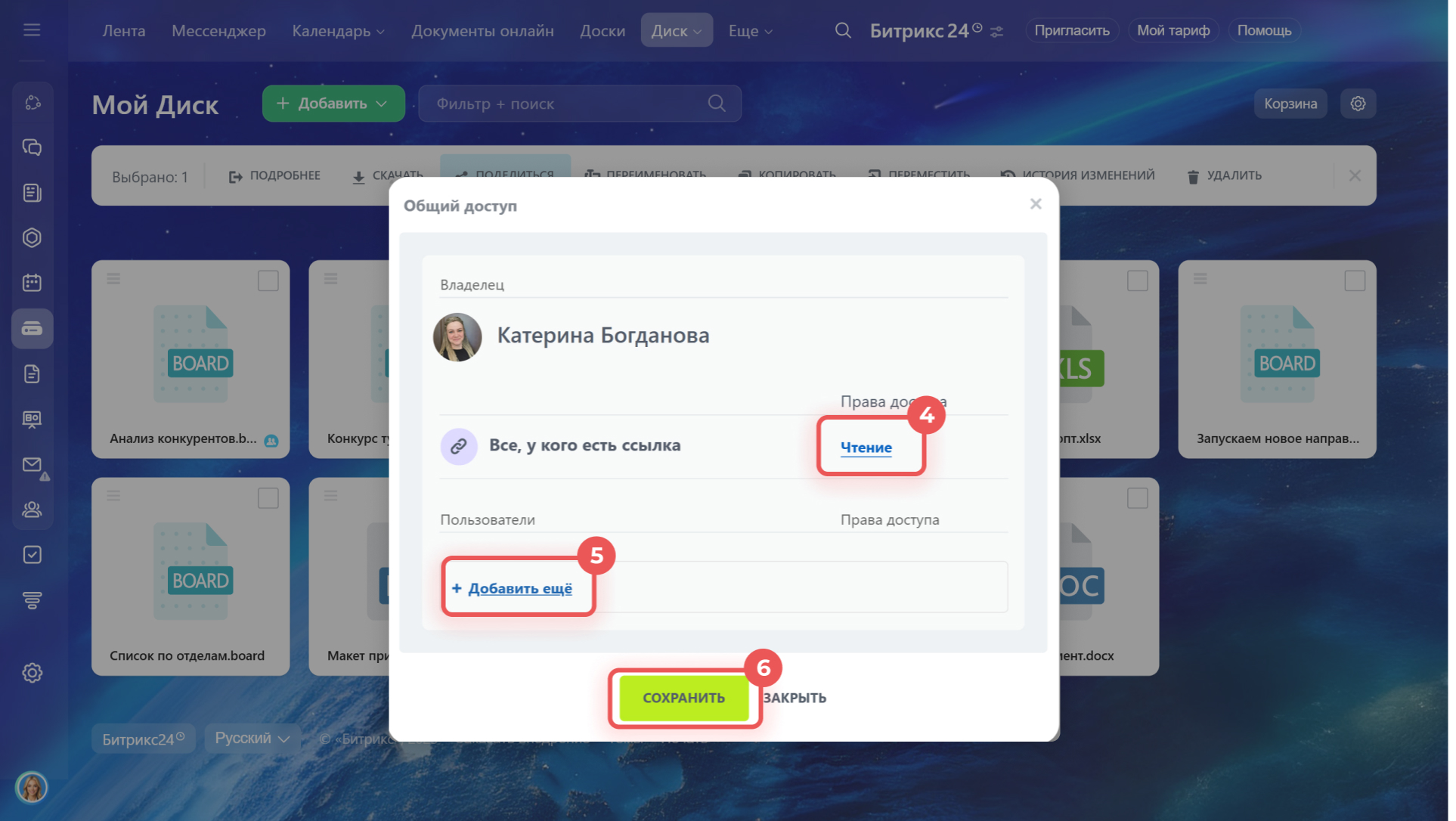 - Права доступа к Моему диску в Битрикс24