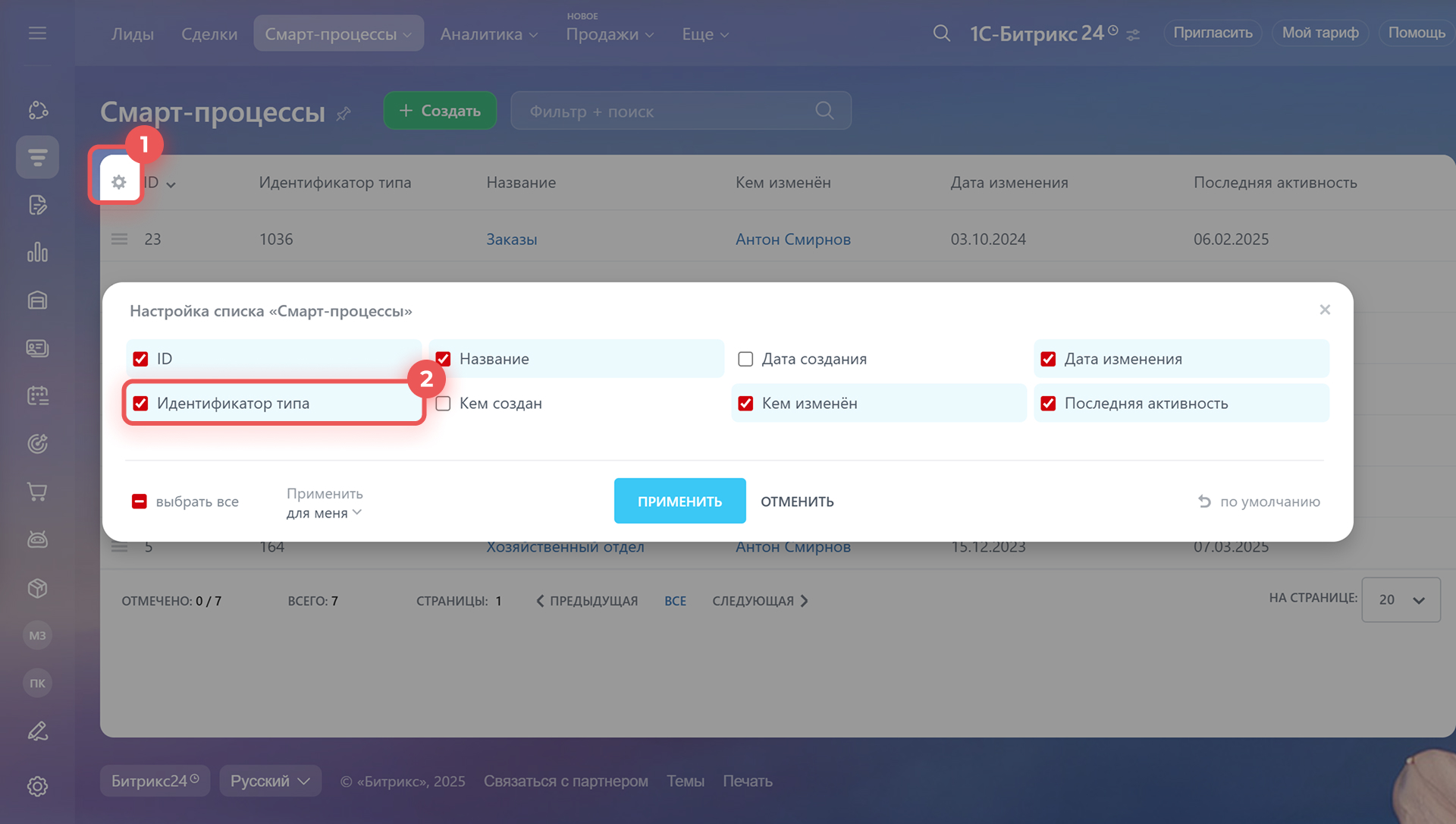 - Если у вас нет поля с идентификатором типа, настройте поля в списке смарт-процессов.