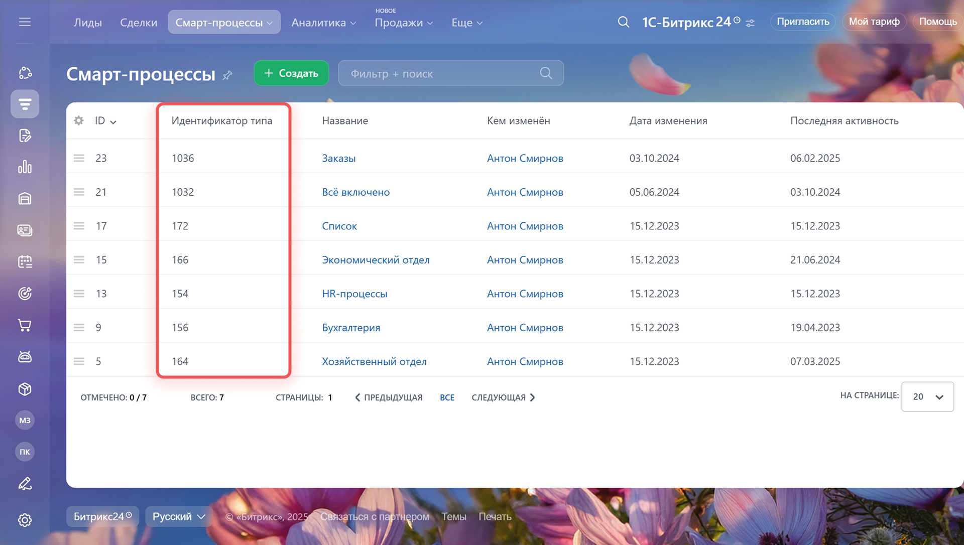 В колонке вы увидите идентификаторы каждого смарт-процесса. Запишите те, которые надо добавить в отчет.