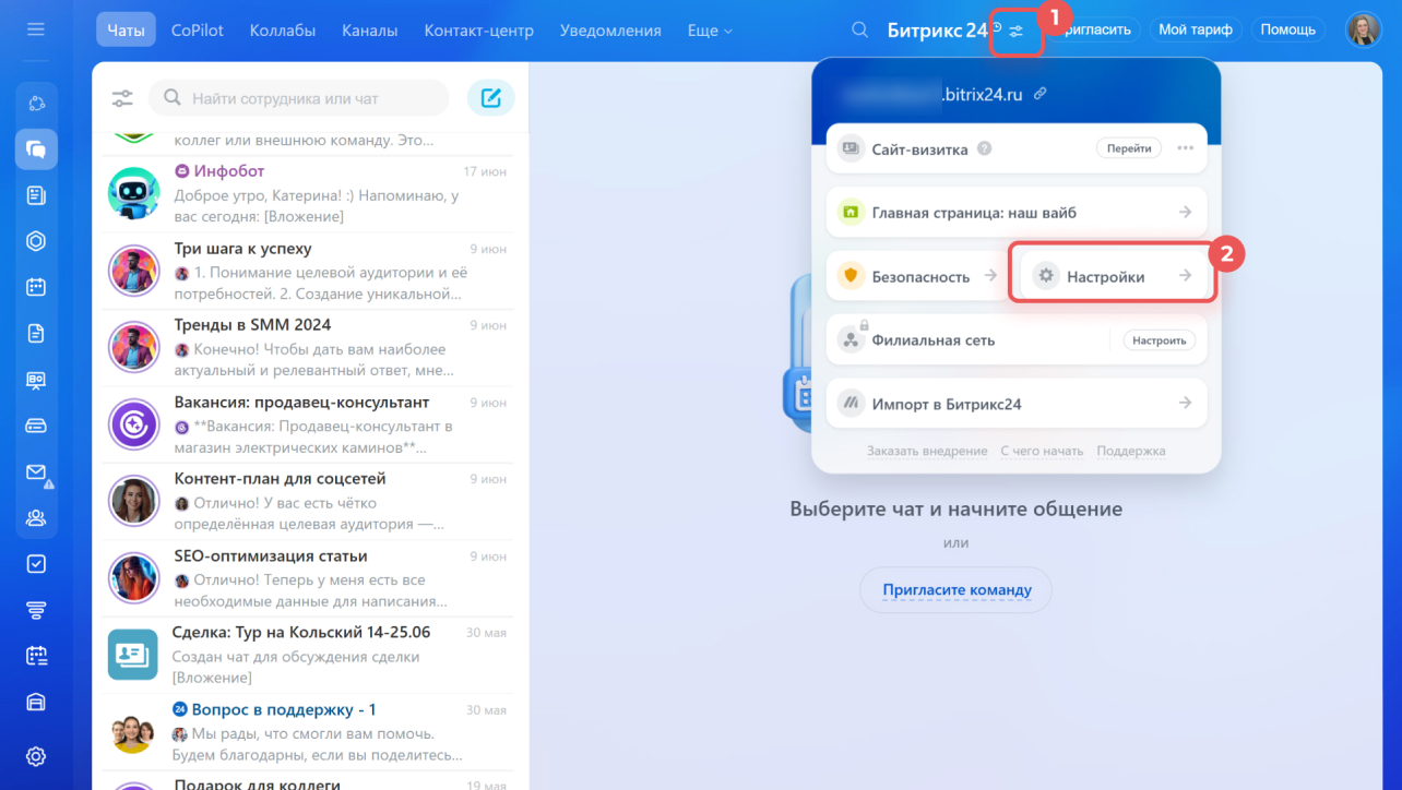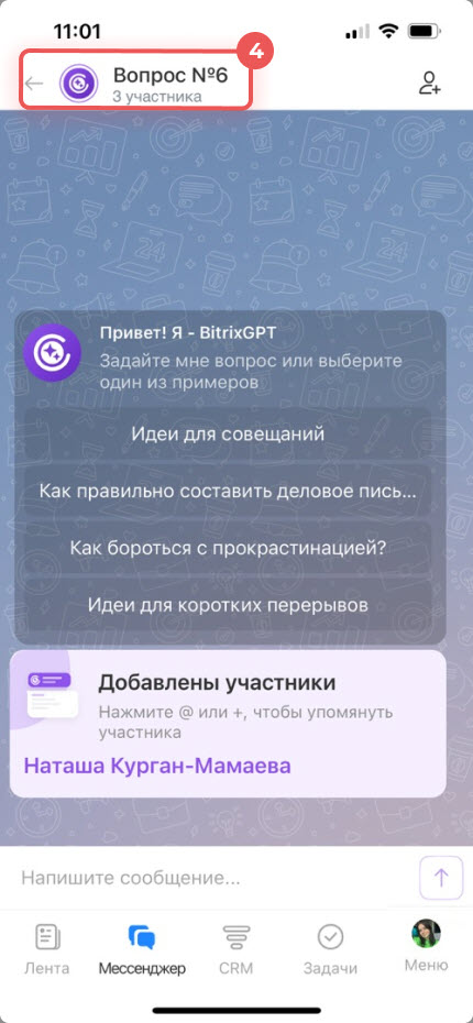 1-3. Перейдите в Мессенджер и откройте чат с BitrixGPT.