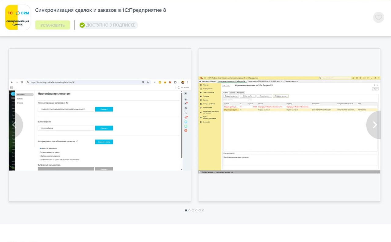 - Позволяет перейти из 1С в соответствующую сделку в Битрикс24 и обратно – одной кнопкой.