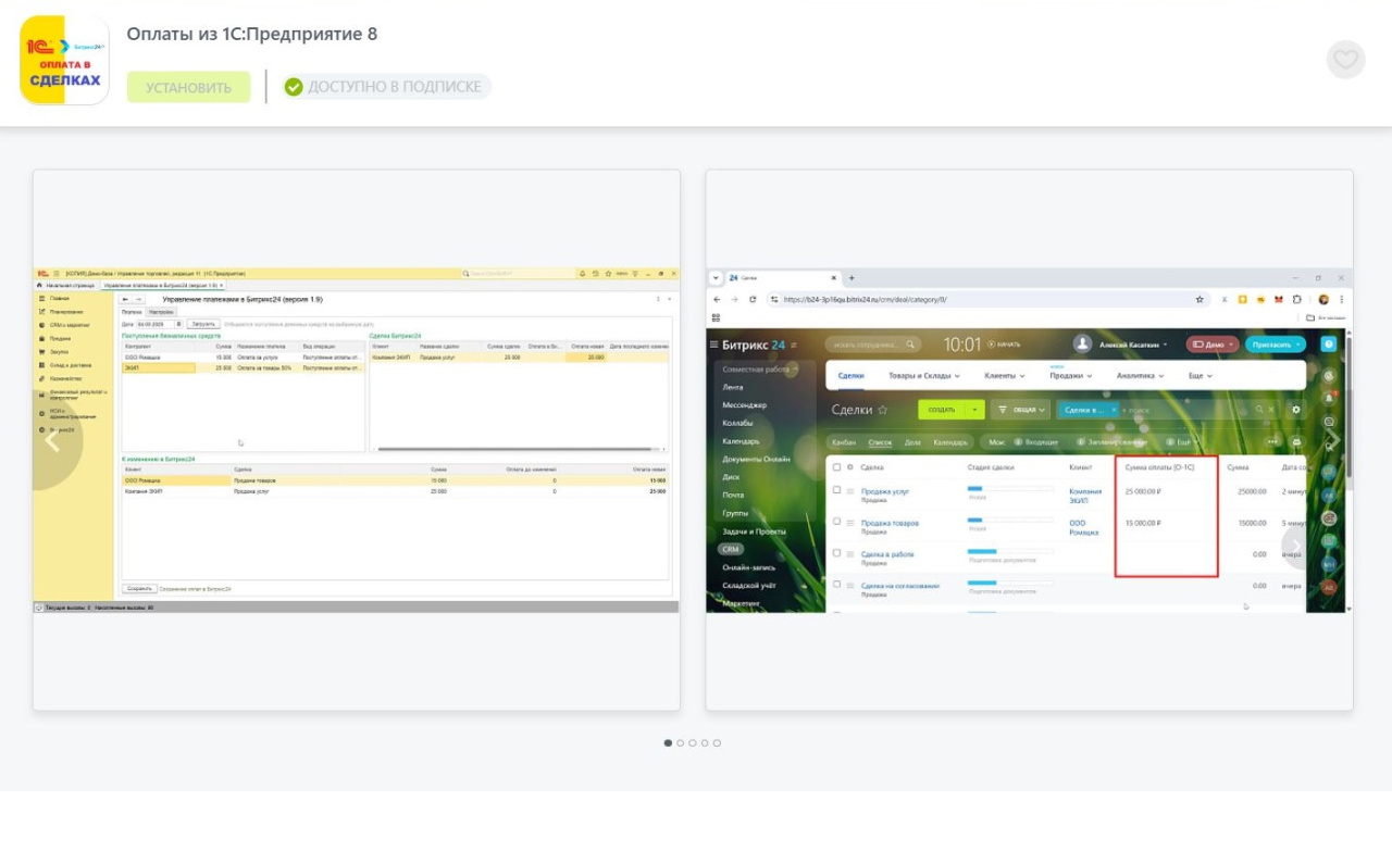 Данные по оплате счетов и заказов из 1С в Битрикс24.
