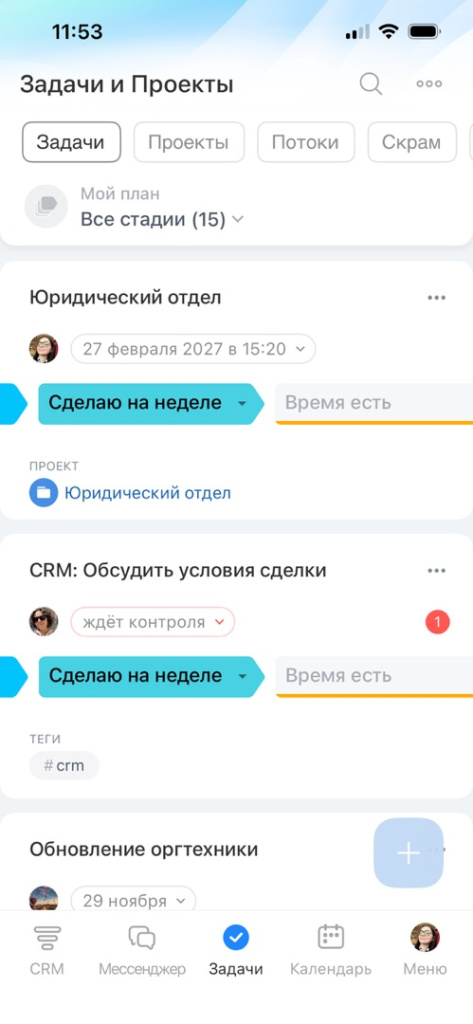 Мобильное приложение. Вы всегда будете на связи с коллегами и клиентами. Общайтесь в чатах, принимайте звонки, ставьте задачи и работайте в CRM.