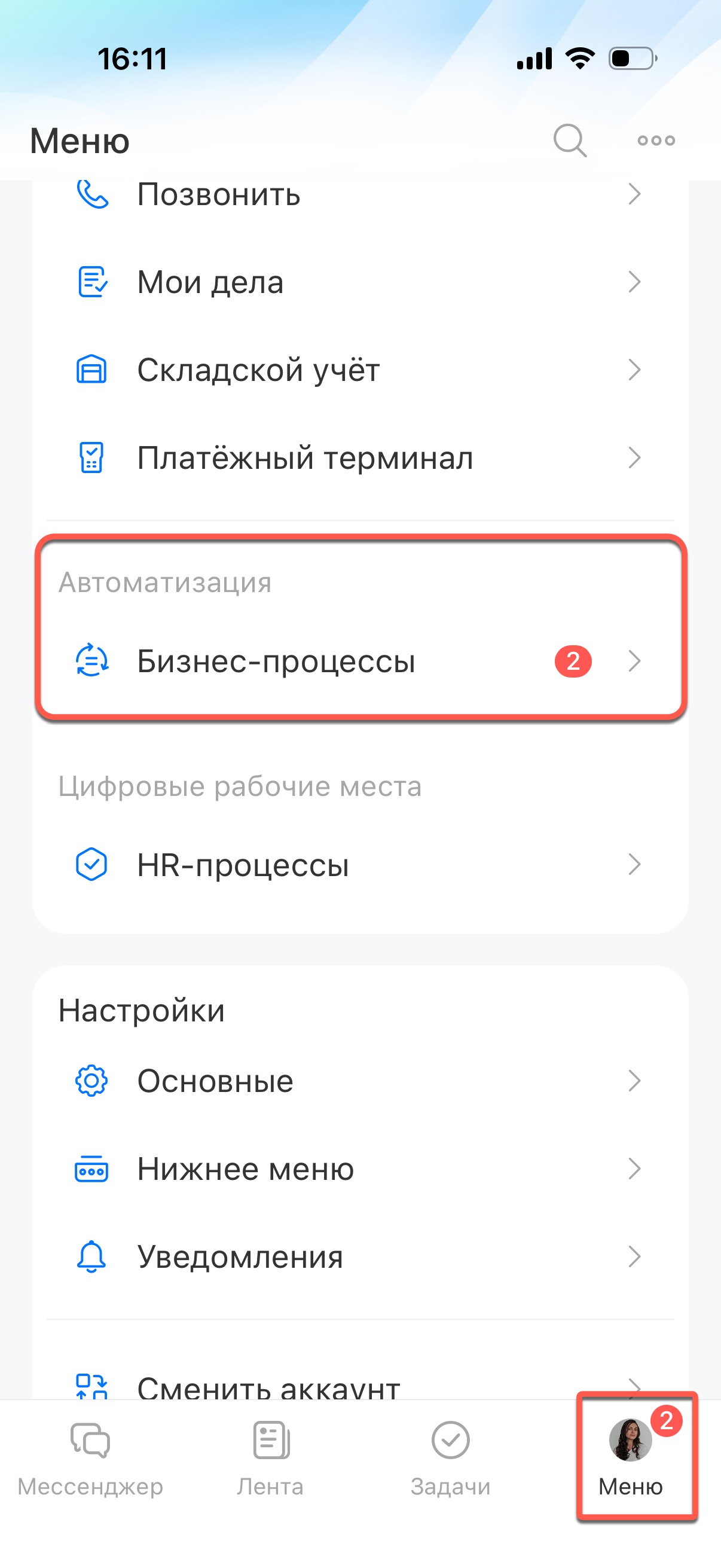 Бизнес-процессы с разными типами заданий. Нажмите Приступить — откроется первый в списке процесс. Ознакомьтесь с информацией и выполните задание.