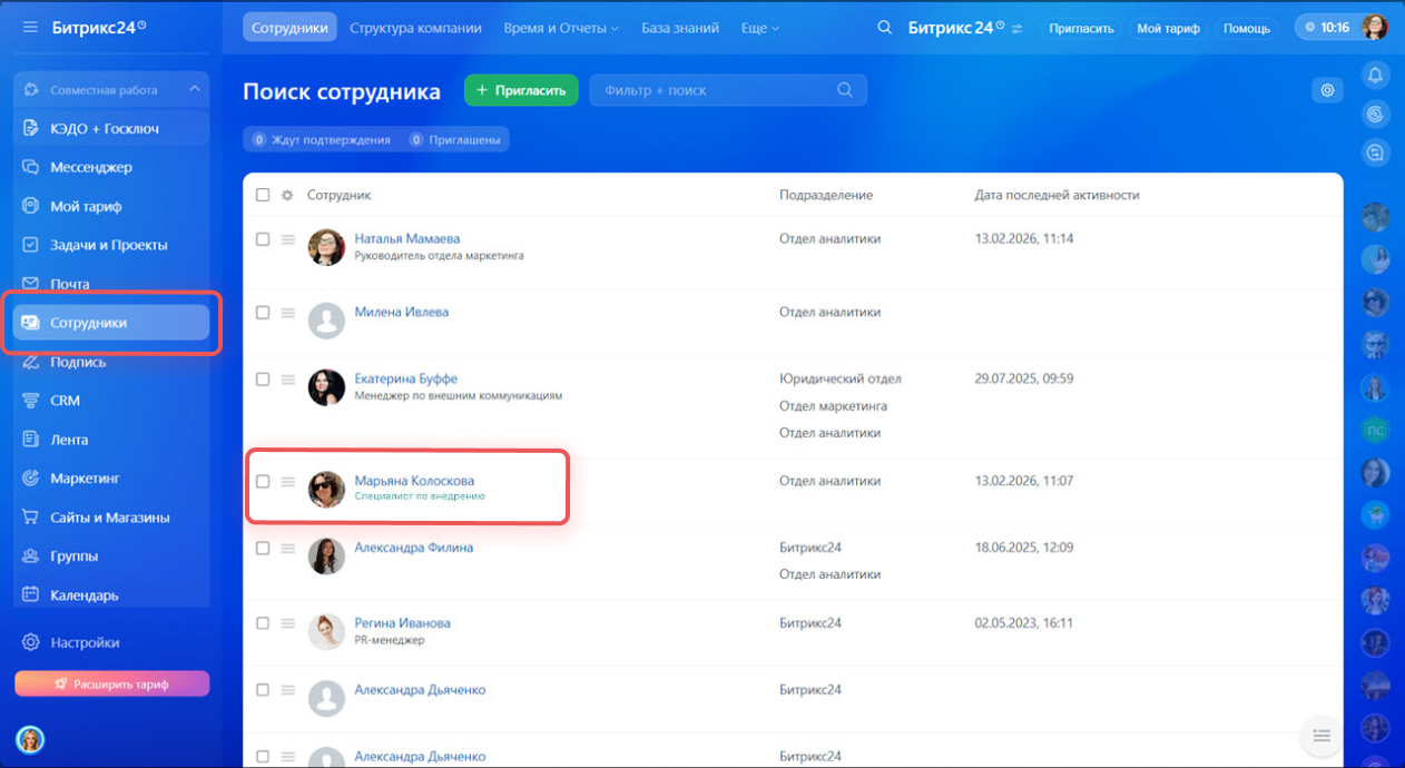 - Пригласить специалиста по внедрению можно только в веб-версии облачного Битрикс24.