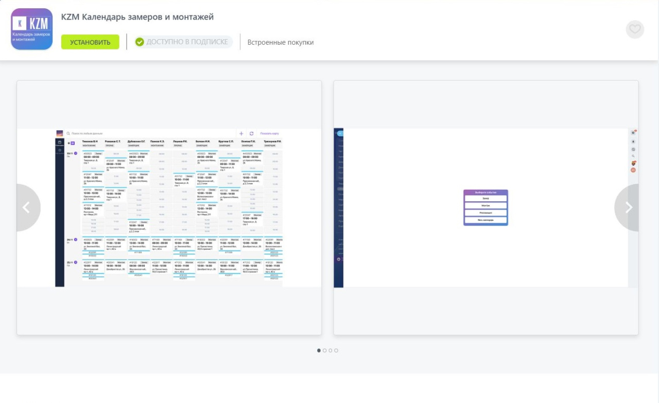 - Календарь замеров и монтажей