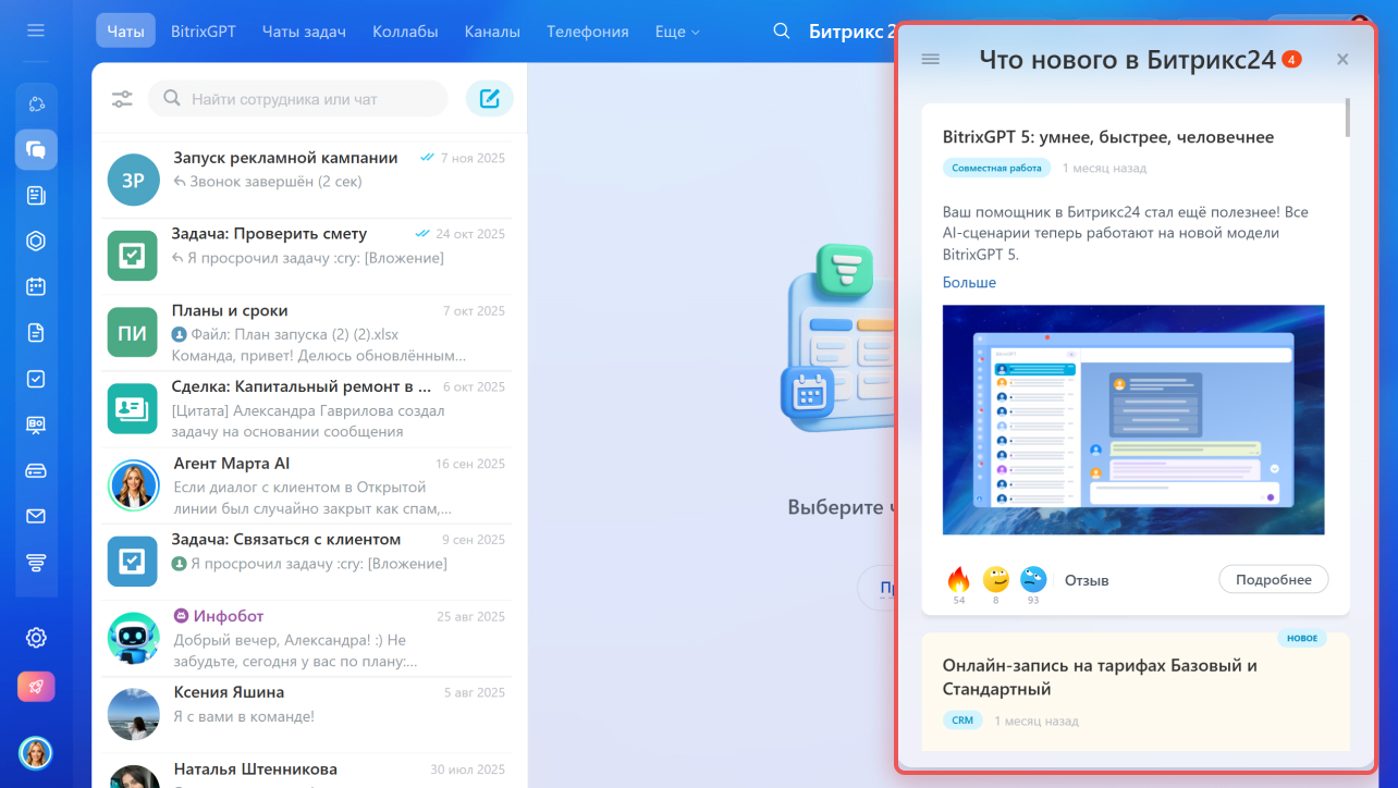 Узнать о новинках. Из блока Что нового вы можете узнать о последних обновлениях в Битрикс24.