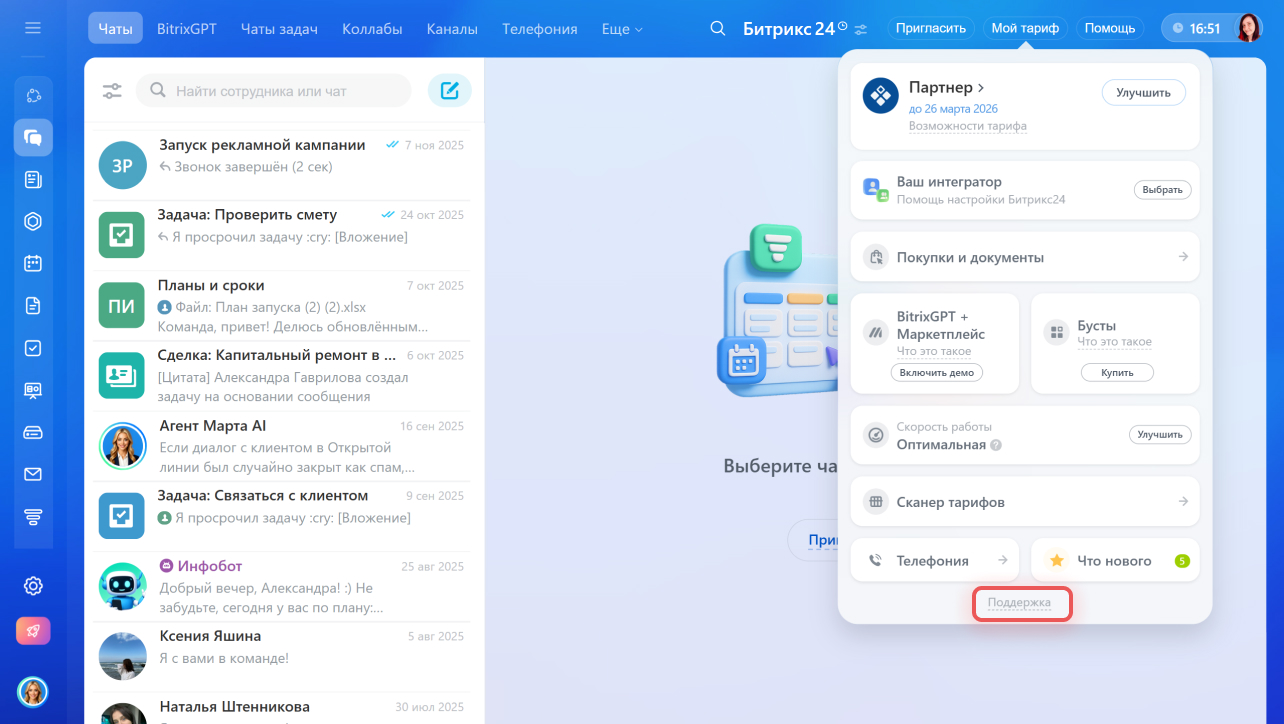 Написать в чат поддержки. Если у вас есть вопросы по работе Битрикс24, вы можете написать в поддержку и получить консультацию в чате. Это может сделать администратор вашего Битрикс24 или интегратор.