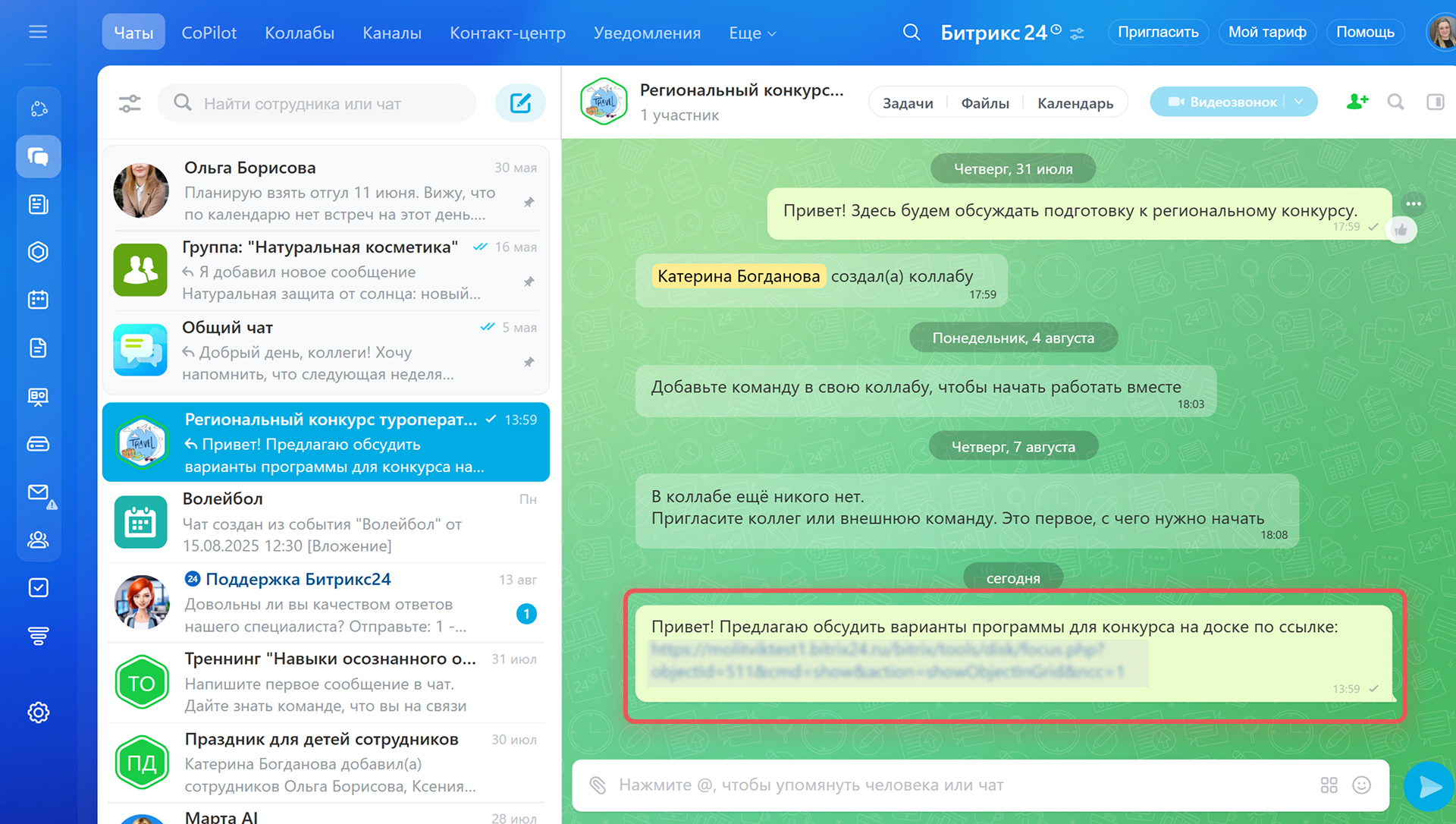 Отправить ссылку на доску в чат. Поделитесь ссылкой на доску с коллегами в чате, чтобы все участники могли одновременно подключиться и работать вместе.