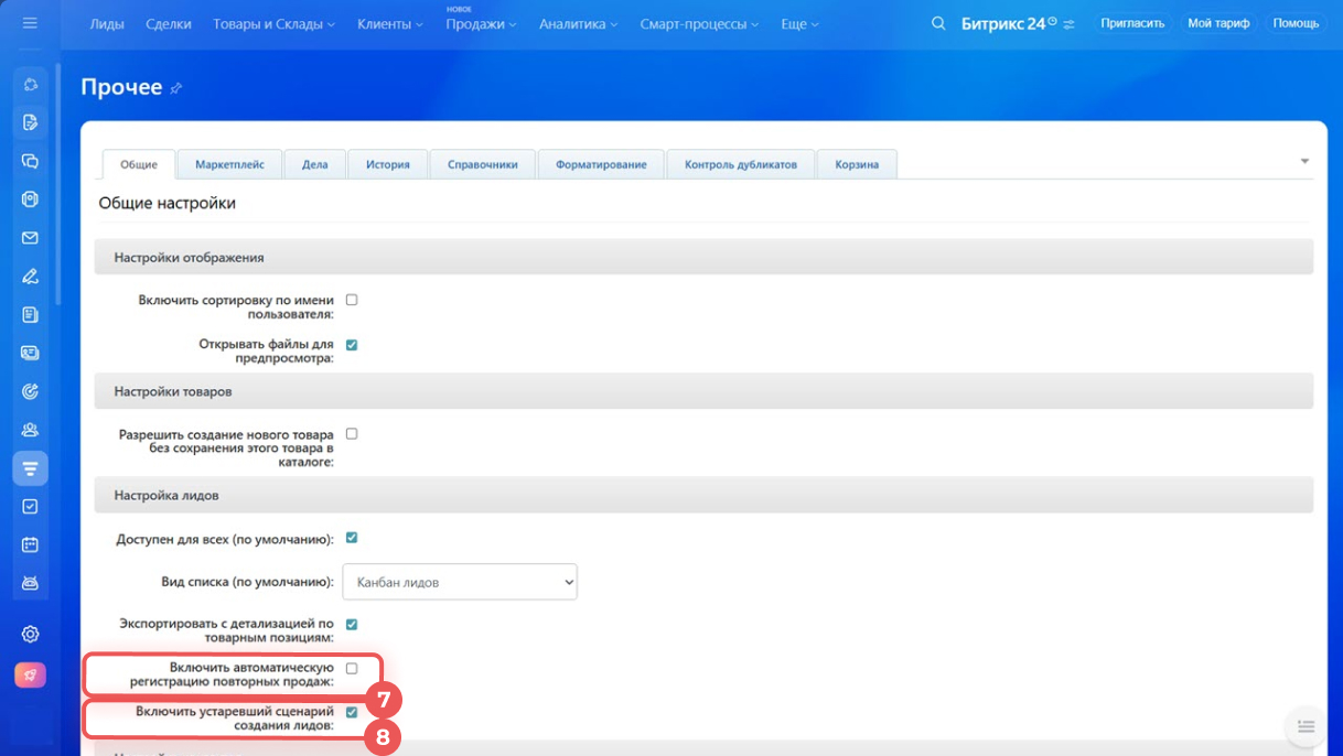 8. Поставьте галочку напротив Включить устаревший сценарий создания лидов.