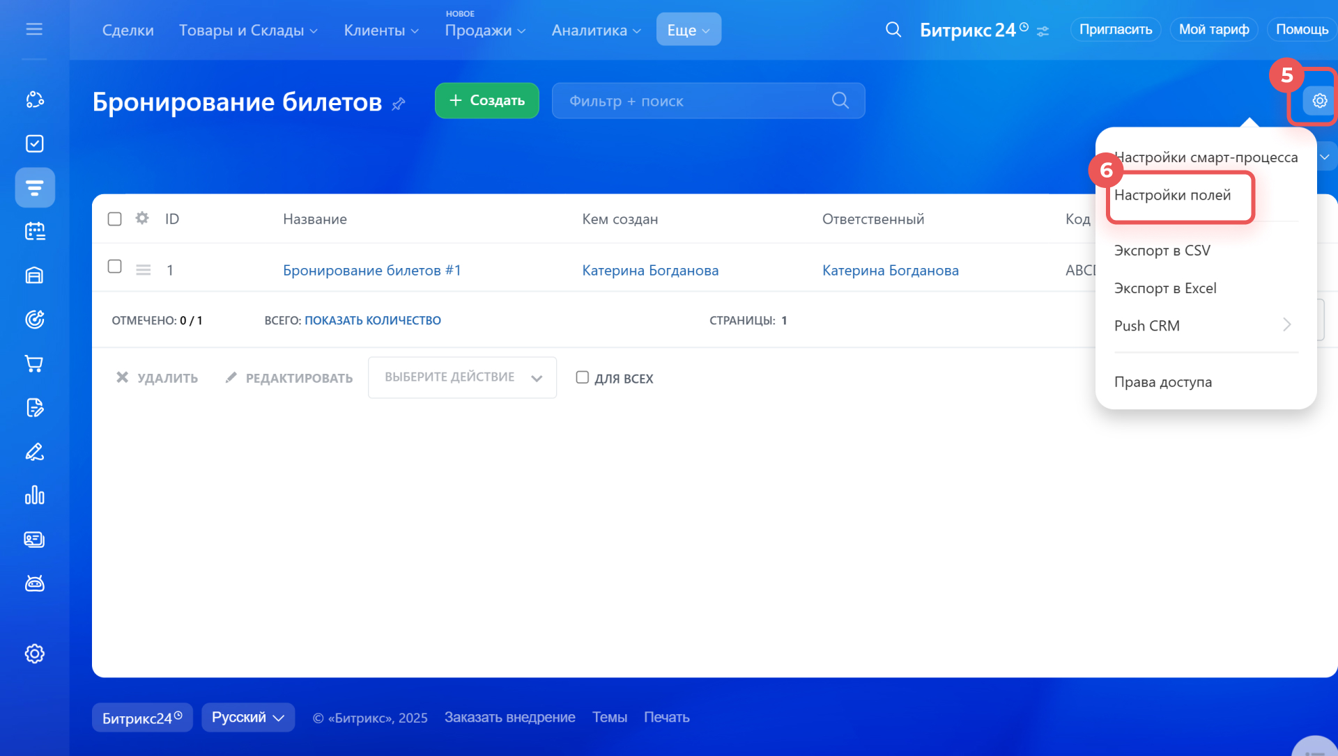 5-6. Нажмите на Настройки (⚙️) > Настройки полей.