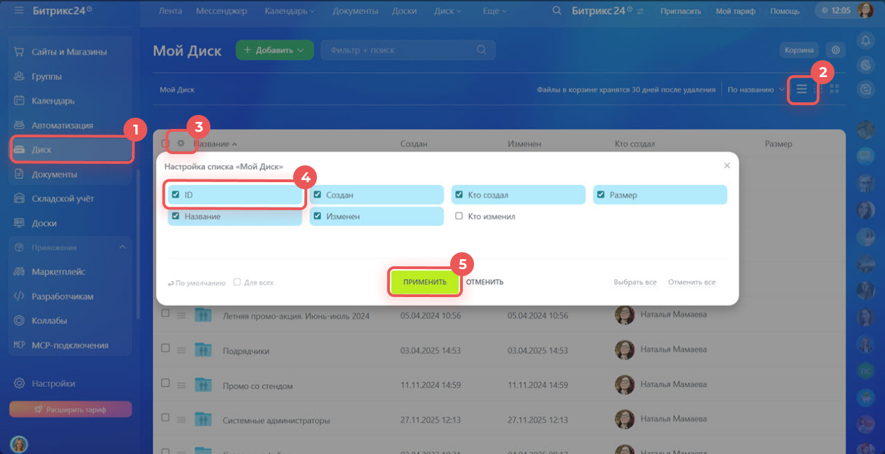 - Если нужно добавить файл с Диска Битрикс24 вставьте его ID в это поле.