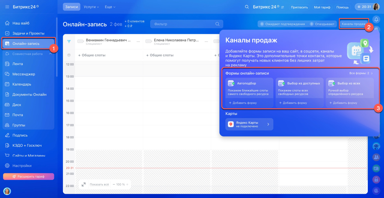 1. Перейдите в раздел Онлайн-запись.