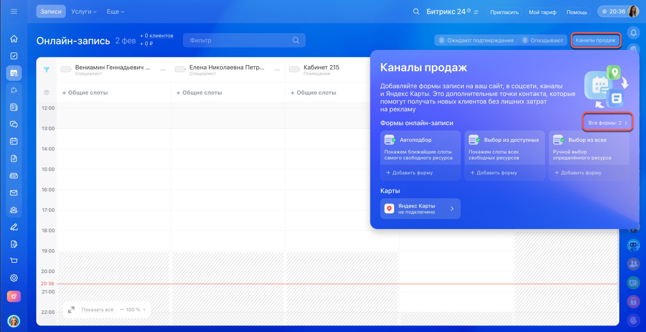 - В Битрикс24 можно настроить форму для онлайн-записи, чтобы клиенты сами выбирали удобное время и записывались на услуги.