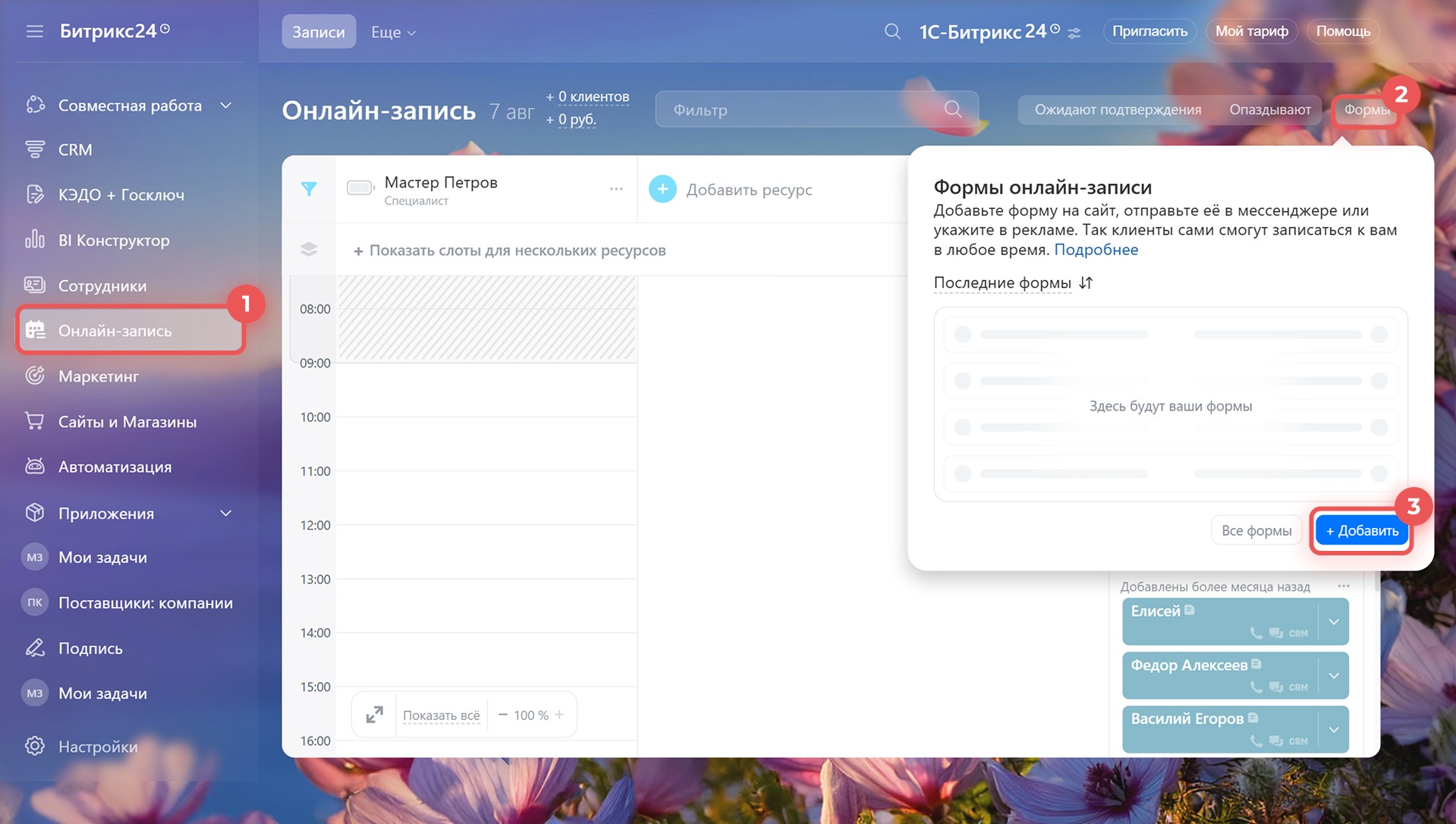 1-3. Откройте раздел Онлайн-запись и нажмите Формы > Добавить.