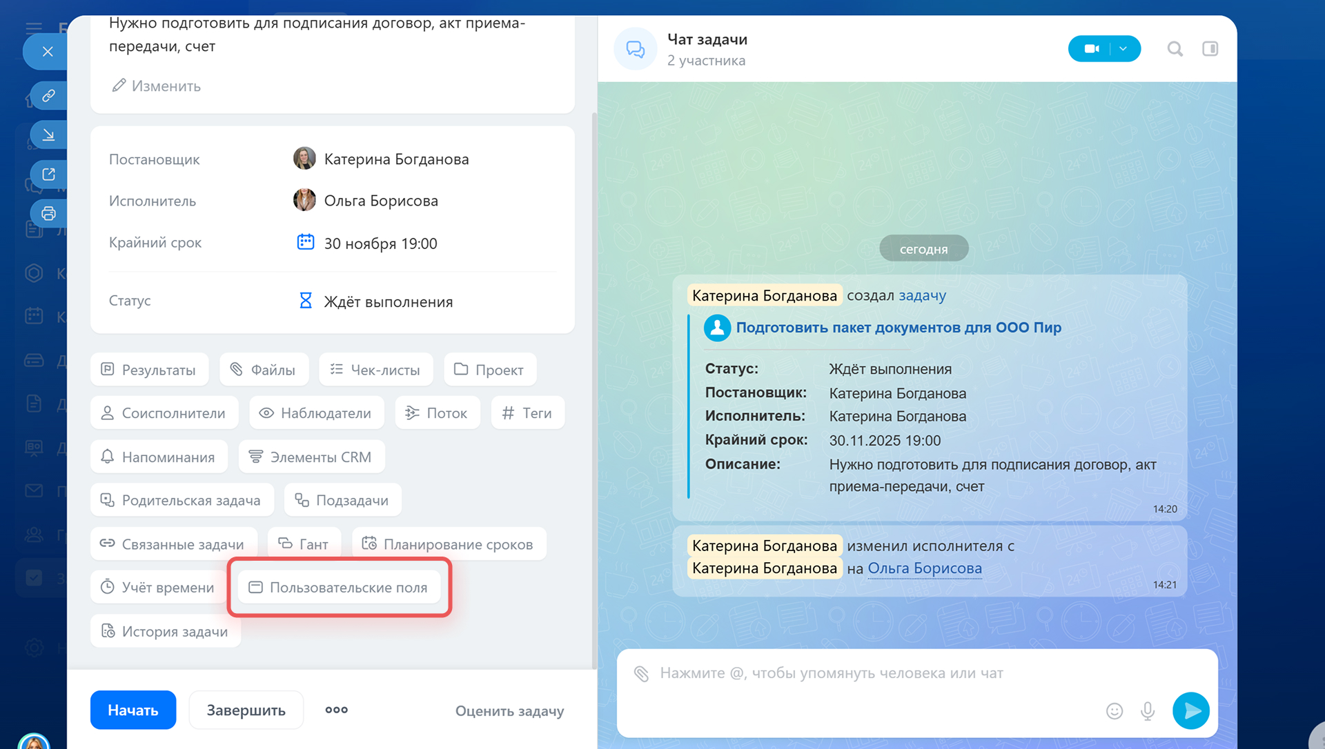 Благодаря Пользовательским полям задачи, помимо прочей информации, будут содержать такие данные, которые полностью отразят суть выполняемых по ней работ.